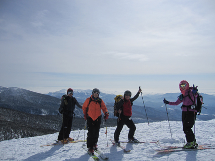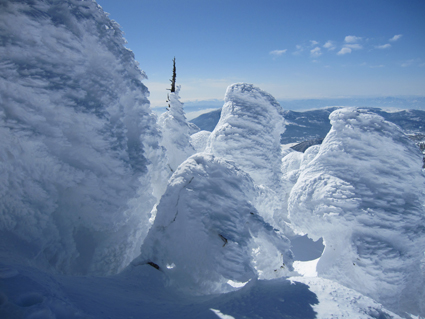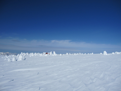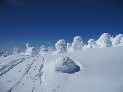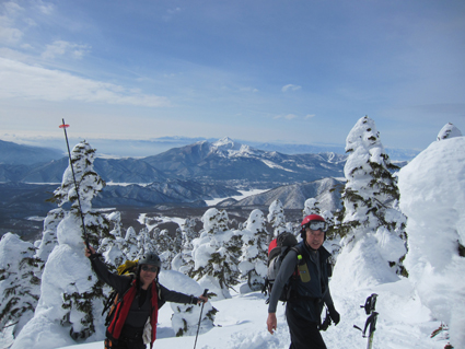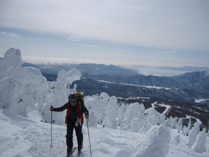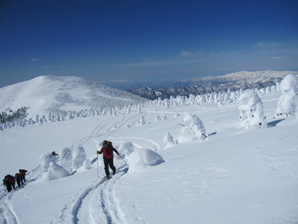 ![]() モンスターと飯豊山 22日の早朝 郡山を出発 デコに着いたのはAM8:15分です 心配された天候も吹っ飛び 青空の覗く絶好のBCスキーツアー日和になりました ![]() デコのゲレンデTOPより磐梯山 フニャフニャツリーを登る ゲレンデTOPをスタートしたのはAM9:00 ツリーは雪が剥がれフニャフニャの状態です ![]() 形が整ってきた怪獣 山頂直下のオープンバーン 登るほどに成長した怪獣が現れるようになる ![]() 小さな道標&飯豊山 朝日連峰&月山 山頂には素晴らしい展望とモンスターが待ってました 怪獣画像スライドをご覧ください。 ![]() 大人のモンスター出現 山頂から見る斜面やコルには立派な怪獣が並んでます ![]() 山頂で会ったMさん(左から二番目) 西大巓斜面のモンスター 山頂では久しぶりにMさんと会うことができた ゲレンデTOPでもしかしてと思うも挨拶を交わすことはなかったが・・・ Mさんから声をかけて頂き再会を喜ぶことができました また会う機会があることを楽しみにしております ![]() 西吾妻山のモンスター 一旦 コルまで下り西吾妻山へ進みます ![]() コルの怪獣 西吾妻山斜面を行く! コルから先のモンスターは素晴らしい迫力でした ![]() 奥に見える避難小屋 迫力の怪獣 避難小屋には寄らないで山頂を目指す ![]() モンスターの中を行く Sei ![]() そしてHaruさん ![]() 西吾妻山山頂から天元台方面 山頂の怪獣 ![]() 巨大モンスター群 ![]() 西吾妻山頂到着 休 憩 西吾妻山の山頂では30分の泡タイムです 山頂で休んでると南方面から黒い雲が沸いてるのがわかる どんどんと北へ向かってきます 之は早めの撤退が賢明と下山の準備にかかりました・・・笑 ![]() オープンバーン 日焼けしたGonちゃん 何時もは楽しい直下のオープンバーンを下ると 雪が腐ってて板が喜びません・・・要するに滑りが下手なのである・・・苦笑 ![]() 腐れ雪を下る 悪戦苦闘 それでも雪と戯れながら下りました ![]() バテバテの滑りでした ゲレンデに着くころはバテバテの私たちの一言は 「無事に帰還」 でした ・・・Haruさん Gonちゃん モンスター 万歳・・・Sei・・・ 動画をご覧くださいね! 戻る |