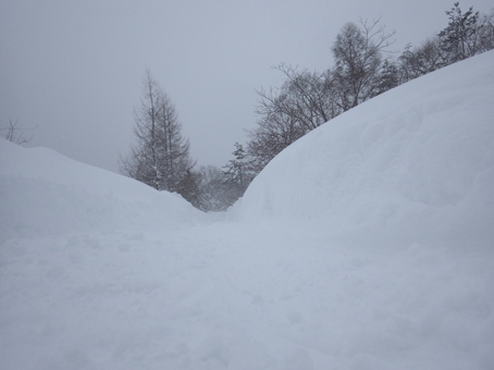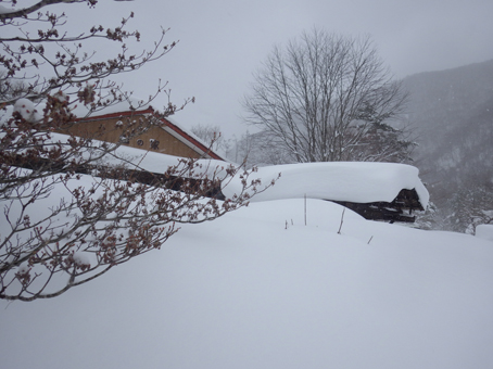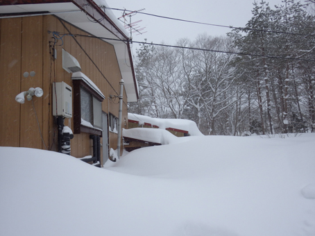 ![]() 山小屋の前は3m近い積雪です 山小屋へ通って12年 ここまでの豪雪は初めてだ! ウッドデッキは埋まり 庇は雪の重みでしなり、之以上積もったら折れることも。 ![]() 玄関の通路 小屋裏側 雪かきをしても直ぐに埋まる玄関 裏に回れば物置や給湯器の小屋は既に雪の中です ![]() 雪の回廊 東小屋 車の高さまで雪の回廊ができた小屋前の道 東小屋の屋根も雪が積もり重たそうだ。 ![]() 屋根だけ出てる 地面と連なる屋根の雪 小屋前の積雪は3m位あり 完全に地面と屋根が連なってます ![]() 危ない雪の重み! 全てが雪の中 どこもかこも雪の中になった山小屋の今! ![]() 初めての記録的な積雪 雪解けが待ち遠しい 3月なのに此処までの豪雪は・・・ 早く雪解けの春が待ち遠しい山小屋の記録的な雪でした 動画をご覧くださいね! 戻る |