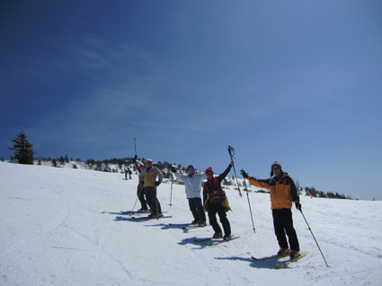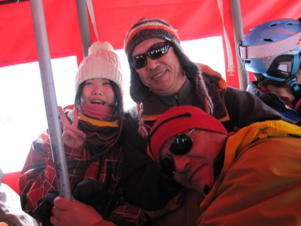 ![]() 根子岳山頂より(白根山方面) 10年前くらい スキーを始めたばかりに訪れた奥ダボス 根子岳TOPから気持ちよく滑ったことを思い出して計画いたしました ![]() 雪上車(スノーキャット) 乗ります・・・笑 素晴らしい天候の中をスノーキャットに乗り山頂近くまで行きます ![]() 乗ります・・・苦笑 乗り場にて! 4kmのルートをスノーキャットツアーに合流して 登る 楽々BCスキーです ![]() ツアールートより(右に根子岳) スノーハイク 登ってゆく右手奥には根子岳の山頂が見えてる ルート上にはスノーハイクの山家さんが大きなザックを背負って登る姿が在りました ![]() 遠望の景色 眼下のスキー場 雪上車から降りると素晴らしい展望が広がります しかし見えるはずの北アルプスの山々は霞で視界が悪く見ることが出来ませんでした ![]() 山頂(Haruさん・Gonちゃん・Hiroちゃん・Sei・タッシーさん・Su-さん) ![]() 四阿山 山頂の鐘 山頂からは肩を並べた四阿山や尾根越しに白根山が見える ![]() 山頂の方位標(右下) 脱ぎ捨てられたウエア 方位版には霧ヶ峰や美ヶ原などなどが示されてた 快晴無風の山頂は暑いくらいです ![]() 分岐にて! ![]() 滑降開始 根子岳のピーク 大展望を目に焼き付けて之から4kmのダウンヒルを楽しみます ![]() スノーキャット 大斜面の皆さん 滑降を楽しんでるとスノーキャットツアー雪上車が来ました ![]() タッシーさん Hiroちゃん ![]() Su-さん Haruさん ![]() Gonちゃん Sei ![]() 青空の下で! 2170mから4kmのダウンヒル 楽しいスキーツアーは短時間で終了した 皆さんもう一度山頂に行きたいようでしたが ¥3300の乗車代は予算オーバーと諦めてゲレンデに滑り込む!・・・笑 早めに宿に入り宴会が始まったのです 動画をご覧くださいね! 戻る |