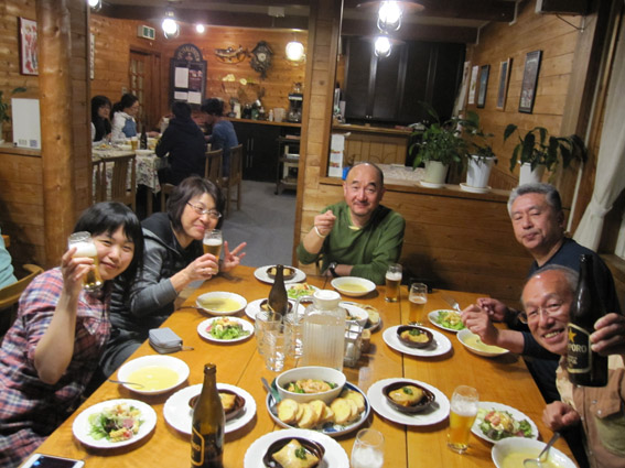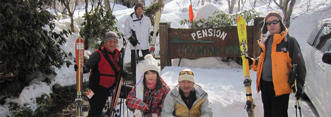 ![]() 宿Mountain Papa (Sei・Su-さん・Hiroちゃん・タッシーさん・Haruさん) 二日目は峰の原高原スキー場へ 昨日の酒も残る体ですが元気いっぱいの皆さんはゲレンデへと降り立った ![]() ゲレンデ直ルート Hiroちゃん&タッシーさん 宿からゲレンデへは直に出ることが出来ます 林間ルートを下るとゲレンデハウス前に出る ![]() Haruさん&Su-さん 北アルプス位置ガイド板 早速リフトに乗りTOPへ行くと北アルプスの位置を示す案内板が在ります しかし眺める遠望は霞がかかり白い尾根を確認することが出来ませんでした ![]() コース案内板 (タッシーさん・Gonちゃん・Hiroちゃん・Su-さん・Haruさん) ゲレンデ 此処のスキー場は、すり鉢状になってて何処を下りても中央に戻ります 各リフトのTOPには林間ルートがあり 山スキーを好む私たちにはお気に入りの場所となる! 尾根にあるコースからは昨日行った根子岳が見えた 今日も素晴らしい天候の中を尾根下りを楽しんでる山家さんが居るだろうと見つめるSei・・・笑 ![]() 上空の飛行機 初日(奥ダボスにて)昼食 真っ青な空に現れた飛行機を見つけたGonちゃん 飛び去る物体を見て「待って~」とカメラを取り出しシャッターを切る姿が滑稽でした・・・笑 ![]() 宿で宴会です ![]() 美味しい料理が次々と並ぶ! 落ち着いた雰囲気の宿は家族的な暖かい空間が在ります ご主人も温厚な方で話し方がとても柔らかい 24時間風呂に入り飲むお酒と美味しい料理は極上でした 二日間、菅平高原の滑りを楽しんだ私たちは帰路にある温泉に入り 信州蕎麦を食べて おやきをゲットするとチョー満足の旅を終えるのでした みなさん また来ましょうね~ ・・・Sei・・・ 動画をご覧くださいね! 戻る |