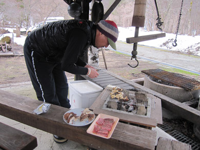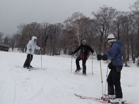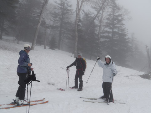 ![]() 西大巓&ゲレンデ グランデコスキー場へ板納の滑り&プチ登山の為に、やってきました 午前中は雨の予報に合わせて着いたのはAM11:00です 小雨降るゲレンデを眺め、ゲレンデハウスで今日の予定を打ち合わせる・・・笑 ![]() ゲレンデハウス前のコース ゴンドラ駅 ゴンドラに乗り山頂駅に着いたのはPM12:00です 雨は上がるも、ガスのかかるゲレンデ ![]() ゲレンデTOP プチ登山のタッシーさん 準備して山頂目指すタッシーさん時計を見るとPM12:07分 下山をPM3時に合わせると折り返しは一時間後のPM1:07分と繊細な分刻みの打ち合わせでした ![]() 山頂目指します 途中まで同行するSei 行ってきますとワカンを履いて元気に出発です Seiもウロコ板で途中まで一緒に登る ![]() 雪面固く歩きやすい 1660mで折り返すSei 春先の雪面は固く歩きやすいとグングン登姿が在りました 同行したSeiは1660m地点で折り返す ![]() 1816mで時間切れのタッシーさん ゲレンデのSu-さん 無線とGPSを持ったタッシーさん 15分おきにコンタクトを取り実況中継のように行動がわかります PM1:07分予定時間になったので折り返しますと連絡が入る 私たちはゲレンデにて滑りを楽しんでました ![]() ウロコ板で滑るGonちゃん Sei 何時もはガンガン滑りを楽しんでるGonちゃんが浮かぬ顔で滑ってる・・・? 声をかけるとウロコの為にブレーキがかかり板が走らない チットも面白くないと不機嫌でした・・・笑 Seiも同じくウロコ板です(ん~ 滑らないね~) ![]() 疎らな滑家のゲレンデ タッシーさんが戻る Su-さんはザラメ雪の滑りを楽しんでます 私たちがゲレンデTOPに居るときタッシーさんが山から戻ってきました 後ろから声をかけられて「おかえり」と言うとタッシーさんが一言! いや~何処にいても直ぐに居場所がわかると。 え~ なんで (でっけいGonちゃんの笑い声が山まで反響してた)との事でした・・・爆笑 ![]() シーズン終了・・? 山頂方面 スキー場のコースは終了したかのような静けさです タッシーさんがワカンでゲレンデハウスまで下りてきたのがPM2:30 早い歩きにビックリでした 板納の滑りとプチ登山を楽しんだ私たちは次のステージへと移ります・・・笑 ![]() 山小屋で! 焼しいたけ 山小屋へ着いた私たちは雪解けの進んだ東小屋で旬の山菜を頂きます つい二週間前までは雪に覆われてた小屋周辺も地肌が見える 近くでクレソンやフキノトウ・山わさび等を採って来ました Su-さんは地元(群馬)のタラの芽を持参、 お~こちらは一か月後しか食べれない貴重なものです ![]() ウインナー焼 クレソン巻肉 サトイモ煮物 ![]() 旬の天ぷら お好み焼き ガーリックライス 久しぶりに外での宴会は豪快に楽しむことが出来た 焼き物は 味よし 風味よし 食べてよし と 三拍子そろい踏みです 山菜は「フキノトウ・タラの芽・ワサビ・クレソン」などなど一足早い春の香りを頂く! 焼肉にクレソンを巻いて食べれば特急の味が舌触りよく通り過ぎ・・・ Gonちゃが作ったサトイモとシイタケの煮つけ&タッシーさんのお好み焼きは料亭のもてなしです Su-さんが持参したタラの芽&サトイモは極上ものだ 今後ともよろしくお願いいたします・・・笑 ![]() 2015年露天風呂オープン ネコヤナギ 2015年も露天風呂がオープンいたしました 皆さん山小屋での出会いを楽しみましょうね~ 二日間有難うございました Sei 動画をご覧くださいね! 戻る |