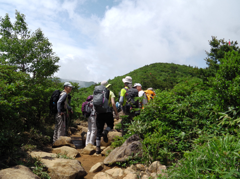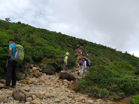 ![]() 安達太良山稜線 21日は山仲間の旅立ちを偲び追悼登山で登りました 9名の参加により胸にリボンをつけ、写真を抱いて道中を供に歩む! ![]() 実行委員長 Sumiさん(右から二番目)挨拶 登山口で!(9名の参加) 実行委員長の挨拶を頂き ゴンドラ駅終点より参加者の9名が足を進めた。 ![]() ゴンドラ駅にある道標 薬師岳道標 道標のある登山道より 薬師岳展望場に寄り鐘を鳴らし仲間を偲ぶ! ![]() 薬師岳集合写真 ナナカマド 和気藹々に語りながら尾根を歩きました ![]() 薬師岳展望場 尾根を登る 薬師岳を後にする参加のメンバー ![]() 仙女平分岐 Haruさん 分岐で大休憩でした 此処ではShunさんから頂いた山形のサクランボを食べまくりです・・・笑 ![]() 山頂へ! 間もなくピーク到着 しばし休んだ後は最後の登りを楽しむ! 此のあたりからザレ場になり泥濘道から解放されます ![]() 小鳥がお出迎え! 安達太良山稜線 小枝には旅立った山仲間を迎えてくれたのか 可愛い囀りで小鳥が鳴いてました ![]() Hiroちゃん&Shunさん 安達太良山のシンボル(乳首) 間もなく山頂の処でSeiは腰に激痛が走る ピークまで行くことが出来るか、静かに足を進めるがなかなか皆さんの 居る場所へ着かないのでした ![]() 中央に山仲間の写真を手にして集合写真を撮る 左から(Shunさん・Sei・Sumiさん・Haruさん・Hiroちゃん・Gonちゃん・Minamiちゃん・Sadaさん・タッシーさん) 中央に山仲間の写真を手にして集合写真に納まる 皆さん元気に乳首に登るもSeiは腰痛に耐えることが出来ず ザレ場に寝転んでしまいました・・・苦笑 少し離れたところで黙祷をし山仲間にお別れをします 心からのお祈りを捧げる! その後40分くらいの休憩ののち下山になるが予定のルート「くろがね小屋」経由に 足を進めることが出来ないSei 4人の同行を頂きゴンドラ駅へ向かう 5名の仲間がくろがね小屋経由で下山した 此処から先は写真が一枚もありません・・・苦笑 下るのに精いっぱいの為に何時ものように写真や動画を撮る気力も湧きませんでした みなさん大変お世話になりました ・・・Sei・・・ 動画をご覧くださいね! 戻る |