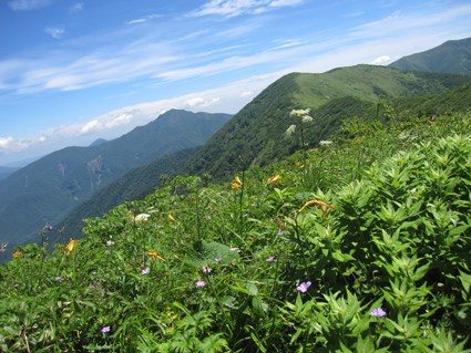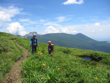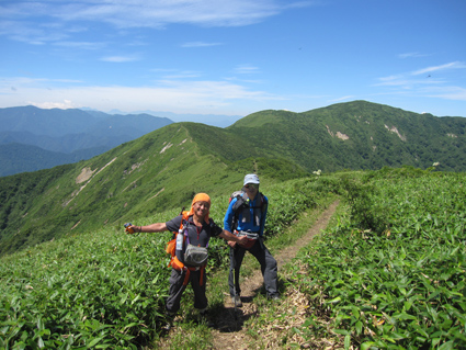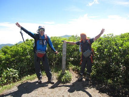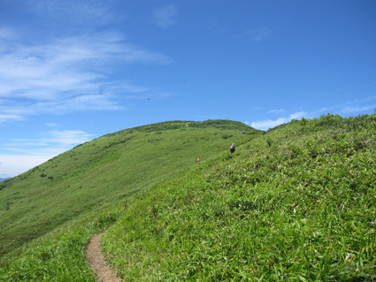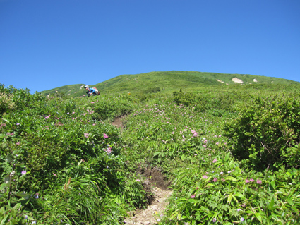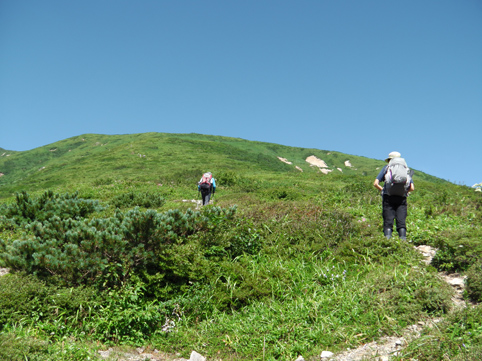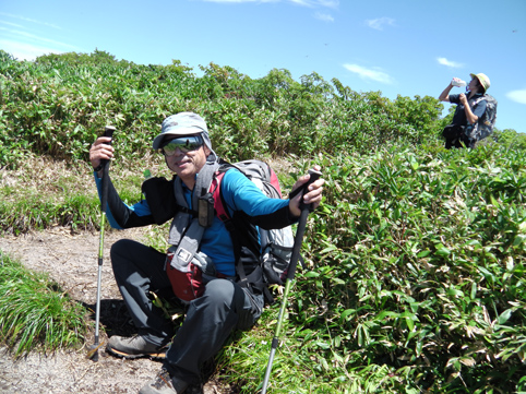 ![]() 稜線のお花畑(キスゲ沼) 朝からカンカン照りの山へ そよ風が吹く稜線でも灼熱の中での歩きを強いられた 流石山~大倉山の記録です ![]() 登山道の碑 鏡ヶ沼分岐 林道の道標を見て大峠へと足を運びました ![]() 大峠林道 大峠(Haruさん~Gonちゃん) 林道は木陰もあり太陽から隠れることもできる しかし大峠まで来ると無木立の山肌が現れ此処から先は 暑さとの戦いになるだろう ![]() 流石の急坂 ハクサンフウロウ 大峠から流石山までは ルートで一番の急坂が待ち構えてます・・・笑 ![]() クルマユリ 流石山頂(Haruさん~Sei) 山肌には多くの高山植物が咲いてた 花を眺めて 一息 二息 重い足を運び流石山のピークに着く ![]() 稜線を歩く! キスゲ沼 此処から先は稜線歩きです 素晴らしい展望を眺めて歩く 足元には色とりどりの花が咲いてました ![]() 尾根のお花畑 真っ青な空 そよ風が吹いてますが・・・太陽から降り注ぐ灼熱が容赦ない! ![]() 稜線にある沼 大倉山(Gonちゃん~Haruさん) 沼の畔にはシャクナゲやコバイケイソウが咲き カエルの卵が水中に浮かんでる! 大倉山に着いたHaruさんとGonちゃんに 三倉山へ行きましょうと話すも強く却下され、此処で折り返すことになりました・・・苦笑 ![]() 大倉山 山頂 三倉山 ピークの先まで行き 三倉山の姿を写真に納め下山となります ![]() 下山(後方は茶臼岳~南月山) ニッコウキスゲ 足取り重くなるも 早く下山してお風呂に入りたいと急ぐ姿あり・・・笑 ![]() 道中の花 稜線歩きは暑い! 真っ青な空の下は気持ちがいい 之で強めの風が頬を撫でてくれれば言う事なしなのだがと贅沢な発想です ![]() 疲れました 少し余裕かな・・・? 道中には団体さんが登山道いっぱいになって休んでます 私たちが来ても除ける体力がないと言わんばかりに足を投げ出していました 暑さで参ってたのでしょうね。 ![]() 茶臼岳&クルマユリ 暑さにやられる! とにかく暑いHaruさんは膝が痛くなり Gonちゃんは頭が痛いと立ち止まります それでも予定通り(三倉は)・・・?のコースタイムで下山いたしました 夏日の低山(2000m弱)歩きは体力が要りますね~ Haruさん Gonちゃん お疲れ様でした ・・・Sei・・・ 動画をご覧くださいね! 戻る |