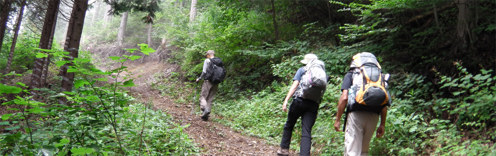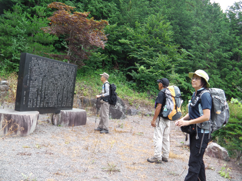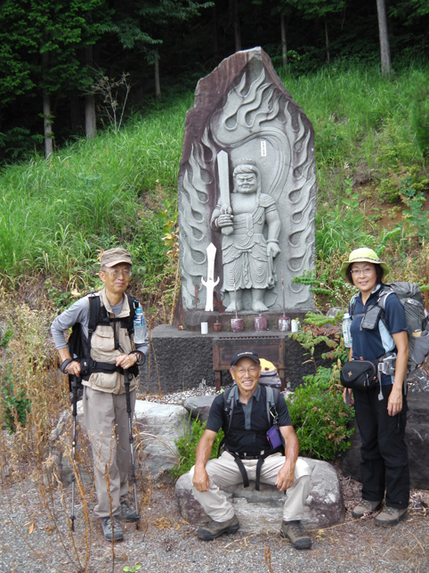 ![]() お盆休み初日は山岳信仰が盛んな霊山へ 標高1286mの山であるが整備されて容易に登ることが出来る 林道にある登山口には大きな駐車場が在りました ![]() 登山口(Gonちゃん~Sadaさん~Su-さん~Sei) 駐車場を見渡しても車は一台もありません どうやら今日の登山者は私たちの他には居ないようです・・・笑 ![]() 杉林を登ると! ススキの山腹に変わる 杉の木に白いテープが巻かれてる・・・? 何を意味してるのか等と話しながら急坂を上ります ![]() 階段も在る 山頂(Gonちゃん~Su-さん~Sadaさん) 山頂までは短時間で登ることが出来ますが・・・ 急登の連続で結構絞られました ![]() 休 憩 山頂の祠 ガスがかかり展望は在りません 晴れてれば9月に予定してる甲武信岳や両神山などが見る事が出来たのかな・・・? ![]() 下 山 ガスの中 下山は回り込んで尾根筋を進み投げ石峠へ下りました 林道に出て駐車場へ向かって歩いてるとキイチゴやシオデを見つけます・・・笑 真っ赤に熟してたイチゴを頂きシオデを摘みます これは美味しいと久しぶりの味覚をあじわった ![]() 不道明王 歴史が記されてる! 駐車場近くには立派な碑が並んでます 大きな鉾や不動明王に並んで歴史が刻まれた石版が在った ![]() 不動明王(Sadaさん~Su-さん~Gonちゃん) 鉾の前で! 1時間半ほどのハイキングコースですが 急坂あり階段在り尾根歩きありと 展望がよければ楽しい山歩きが出来ると思いました 動画をご覧くださいね! 戻る |