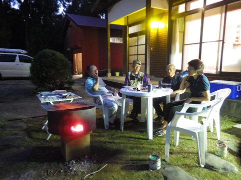 ![]() 柏崎に在ります山荘(山漁庵) お盆休みを利用して豪華な計画の最終二日間は 山漁庵にお世話になりました 回りは森に囲まれ 竹林や柿の木・栗の木など等が広い庭に植えられてあります ![]() 日本海に沈む夕日 北陸道を走る車窓には日没の時間が重なり 海原を染める夕日を拝む事が出来ました 初日は「じょんのび温泉」で待ち合わせ山荘へ移動です 到着早々から ご主人の釣り上げた魚の刺身や空揚げでお持て成しを頂きました ![]() BBQの準備 外宴会 二日目は竹林の見える広い庭先でBBQです ![]() 庵の主人(Maruさん) 釣りのお話で盛り上がる Maruさんが炭火で手際よく焼き上げる牛肉を 椅子に座り食べるのは私たちでした・・・・笑 ![]() 広い庭先で! 夜更けの時間 海原を思うままに魚と戯れるMaruさんの釣り談義や 私たちの山談義と話が尽きる事はありません! ![]() へぎ蕎麦 山漁庵 部屋に入り頂いた「へぎ蕎麦」は海藻のつなぎが練りこまれ とても美味しい蕎麦で久しぶりに違いの分かる逸品に遭うことが出来ました また蕎麦に合う日本酒の美味いこと言う事がございません 初めて会った庵のご主人Maruさん 気さくで優しく以前からお付き合いいただいてる様な気持ちになりました 本当にありがとうございました 動画をご覧くださいね! 戻る |