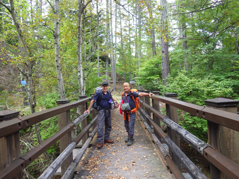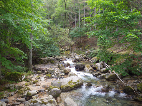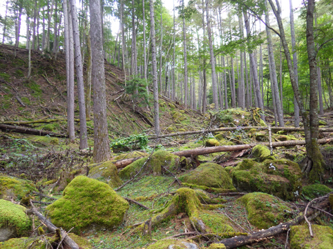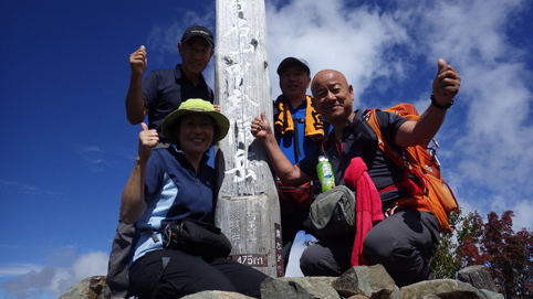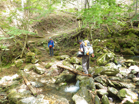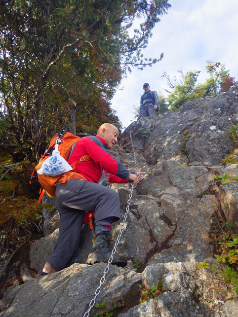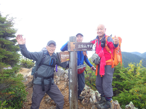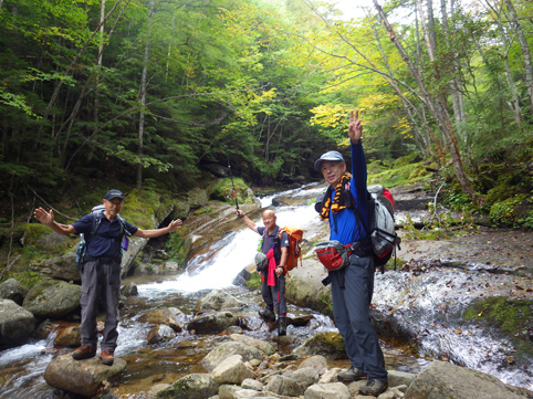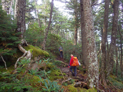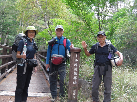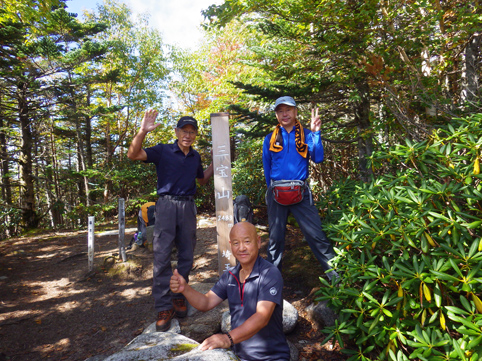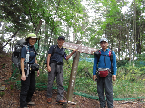 ![]() 毛木平を出発 甲武信は甲州~武州~信州 三国の国境上に位置する為に付けられた名前の様です 私たちは郡山を早朝に出かけて毛木平登山口に着いたのはPM12時を回ってました ![]() 駐車場の案内板(Gonちゃん~Su-さん~Haruさん) 駐車場 案内板のコース設定を見て駐車場を後にする ![]() 最初の分岐にて! 霧橋(千曲源流狭) 直ぐに千曲川の水源方面と十文字小屋の分岐に着きます ![]() 霧橋(Su-さん~Sei) 渓 流 綺麗な橋は源流に架かる霧橋だ 流れはそれほどでもなく済んだ水面に木陰が映し出されてます ![]() 苔の山肌 丸太橋 樹林帯は岩がコケに覆われてて見事な風景を醸し出してました ![]() 石像(観音様) 樹林帯を行く! 登山道わきには一理観音菩薩が祀られています 同じような風景が続く斜面を進む! ![]() 可愛いキノコの列が! 峠の分岐にて! 疲れたころに現れたのはキノコの列です 可愛い帽子は愛嬌たっいぷりで足を休めて話しかけました ![]() 小屋脇の道標 十文字小屋 出発してから2時間余り十文字小屋に到着です ![]() 小屋で宴会 右三人(Satiちゃん・Akutuさん~Mさん) 小屋で受け付けを済ませて外に出た私たちは宴会に突入! 外で出会ったのは茨城から来た同年代の方で同い年と言う事で話が弾み暫し団欒でした・・・笑 ![]() 十文字小屋のランプ 小屋を切盛りするのは女性の管理人です 元気なおかみさんは全てを一人で賄え 数十人の夕食を作る姿が在りました ![]() 小屋を出発 小屋裏の道標 翌日はAM5:45出発です 朝食は食べないでお握りを作ってもらい小屋を後にした ![]() 鎖 場 大山(Su-さん 山頂が近づくにつれて鎖場などが現れます 登山道は相変わらず同じような景色の樹林帯が続き飽きてきた・・・苦笑 ![]() 大山山頂からの展望 数少ない花 所々に現れた空間では遠望の山並みを楽しむことにする! ![]() 秋の雲 樹林帯 すっきりと晴れない空には秋の雲が漂ってた ![]() 尻 岩 三宝山(Su-さん~Sei~Haruさん) 尻岩まで来ると三宝山は残り僅かな距離です 真っ直ぐに延びる緩斜面の樹林帯を登ってゆくと山頂に着きました 山頂で開けてるのは南方面で甲武信ヶ岳の姿を見ることが出来ます ![]() 三宝山(Gonちゃん~Su-さん~Haruさん) 甲武信ヶ岳(Gonちゃん・Su-さん・Haruさん・Sei) 林を抜けると山頂に着いた 山頂は賑やかです 三県にまたがる為に登山道も多いのか・・・? ![]() 休 憩 山頂からの展望 山頂ではゆっくり休憩をすることに! しかし展望の良い岩場は登山者で埋まってます 少し下ったところに場所を取り食事を楽しむ 南西には金峰山方面の山が連なり 東には雲取山方面の山並みを見ることが出来ました ![]() 下山途中に在る水源 55分の休憩を楽しんだ後は一気に下ります 最初に現れたのは千曲川の水源でした 湧水が出てるところはホンのわずかな穴です 此の水源が千曲川となるのかと思うと不思議な興奮を覚える・・・笑 ![]() 沢を渡るSei ナメ滝(Su-さん・Sei・Haruさん) 次にあらわれたのはナメ滝です 其処から先は枝沢を何回もわたり沢沿いぞグングン下る 歩いても歩いても毛木平には着かない・・・苦笑 地図に在ったコースタイムは2時間45分です しかし私たちが駐車場に着いたのは3時間15分後でした ここから下仁田の旅館まで移動して明日は両神山へ登る 急いで車に乗り込み宿へ向かいました。 動画をご覧くださいね! 戻る |