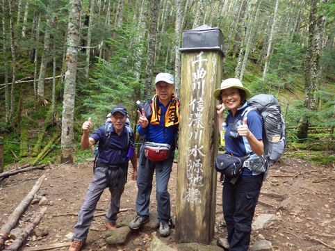 天候(曇り~晴れ) 毛木平~十文字小屋~大山~三宝山~山頂~千曲川源泉