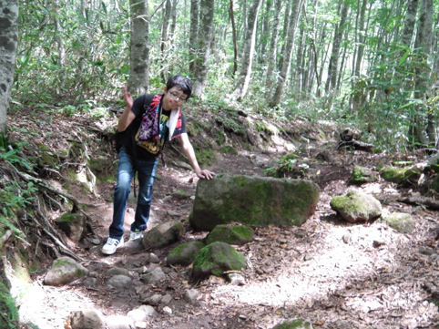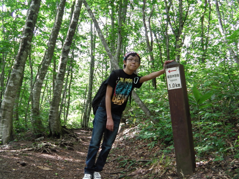 ![]() 稜線より(雄国沼) 今日はYu-君の初山歩きです Yu-君はアウトドアが大の苦手だ それでも体験した事のない登山に挑戦したいとやってきました。 道中は車窓から見える山々の名前を教えたり 山カメラと言うアプリが在ることなど話して登山口へ車を走らせた ![]() YU-君とLove ブナに触れる お供に選んだのはLoveとSeiです・・・笑 登山口よりLoveに引かれていよいよ未知の世界に突入だ ![]() 林間を行く 道標にて! みどりの林を歩くYu-君 気持ちがいいと笑顔がこぼれる 疲れないかいと聞くSeiに大丈夫と返事は元気です ![]() ブナ林 みどりの風景 林を歩きながらトチノキとホオノキの見分け方などを話します 最初は何処が違うのと? 言う 感じで聞いてたYu-君 何度か葉を見るうちに違いが分かるように成りました ![]() 休憩です ツルに戯れる 一時間ほど歩くと少しペースが落ちてきました そこでツルと遊んだり木の根に座ったりして疲れを取る様にします ![]() 休憩舎までの道標(1.5km) 大きなパンをペロリ 道標を見てYu-君が一言(山頂まではどの位かかります) 初めての山歩きでなくても時間は気になるものだ 後30分ぐらいかなと気持ちを考えて短めに伝えるSei けして悪気はないのです よーしと意を決したように 大きなパンをかぶりつくYu-君の姿が在りました・・・笑 ![]() 気持ちのいい林を歩く 道標にもたれて! 疲れが出てくると中間にある道標が気になります 休憩舎まで後1kmを見て余裕が出るYu-君! ![]() 岩とYU-君 分岐の案内板 時間とともに色んなものに興味を示すYU-君 休憩舎の分岐まで来ると、いよいよ残す道のりは約0.5kmで山頂だ! ![]() うるしの紅葉 ナナカマドの実 赤い葉がウルシの木で赤い実がナナカマドだよと教えると 「え~~~ そうなんだ」 とアウトドア初体験のYu-君でした・・・笑 ![]() 猫魔が岳の峰 尾根に出た 沼が眼下に見えて尾根を歩けば山頂はすぐです ![]() もう一息(ガンバレ) 尾根より沼を見る しかし初めての山歩きでは簡単ではありません 気合で歩くも休む姿が目立ち始める ![]() 眼下の沼 雲に隠れた磐梯山(左端) YU-君に時間は関係ない 自分のペースで歩くことが一番大事と話すと頷く姿が在りました ![]() シラタマの実 ウスユキソウ・・・? 花が咲いてる所やシラタマの実が在る場所に来ると立ち止まり Yu-君 白い実をつぶして鼻に近つけてごらんと 私もシラタマの実を手にします 潰して匂いを嗅ぐと「ん~ ミントの香りがする」と不思議そうでした ![]() 山頂直下のYu-君 櫓に座る 木の階段まで来ると残すところ100mだ! Yu-君 ガンバレ ![]() 山頂に着いたYu-君 LoveとSei 山頂に着いたYu-君 辛かったのだろうね~ 顔がゆがみ達成感はまだ皆無の様です しかし徐々に疲れが取れて来ると櫓に上がり手を振り感激深げでした 「Yu-君 凄いぜ~ 初登山大成功」 展望台の上から絶景を眺めお握りを食べる姿は山男です ![]() 展望を楽しむ! 下山です 10時から登り始めてPM12:18分に山頂に着いた 55分まで休み下山開始 駐車場に着いたのはPM2:20分です 帰りの道では足がカクカクすると話すYu-君 誰でも体験する山歩きでした 下山した私たちは帰路の道を郡山へ向けて走ります Yu-君 疲れたのか直ぐに爆睡でした・・・笑 Yu-君 また一緒に山へ登りましょうね! ・・・Sei・・・ 動画をご覧くださいね! 戻る |