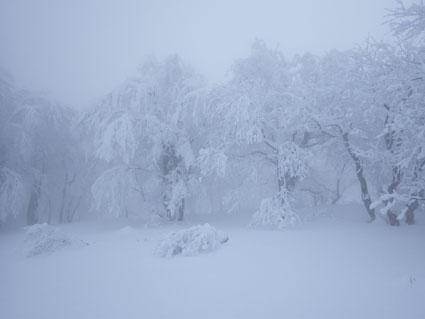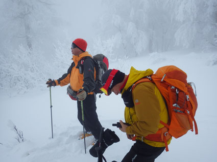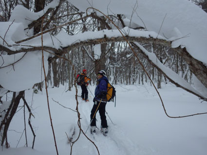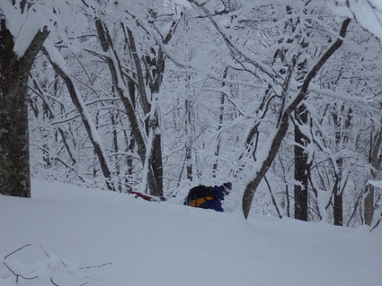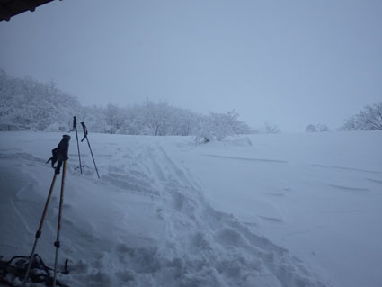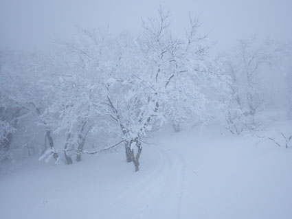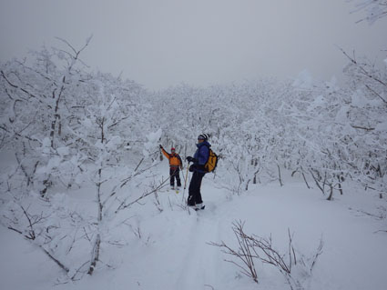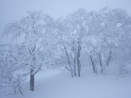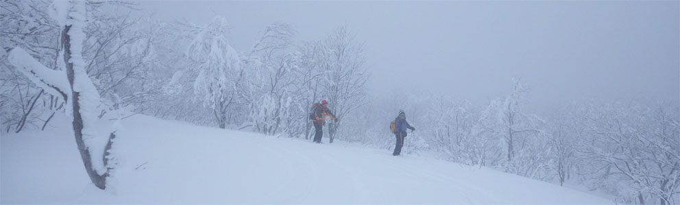 ![]() 猫魔ヶ岳(Haruさん~Gonちゃん) Raccoさんの記録を拝見して お~ 大丈夫そうだと出かけた沢下りです ![]() 並んでるゲレンデタクシー 試乗しました 駐車場に着くとズラリと並んだゲレンデタクシー 昨日から猫ではスバル自動車の試乗会が開催されていました ![]() 私たちが試乗した車です ゲレンデTOP ゲレンデの急斜面を滑ることもなくグングン登ってゆく車 下りは自動制御が働き、ペダルから足を放しても安定した走りです ![]() 雪化粧の木々 元気に出発 太陽の日差しも期待しての出撃でしたが・・・? ![]() 真っ白な雪原 埋まりきれない低木 真っ白な雪原は気持ちがいい 埋まってるだろうと思ってた地点の低木の姿は雪の上です ![]() 15cmくらい沈みます ルートを確認 少し板が沈むが粉雪で斜度が無くても滑りを楽しめた ガスの中でルートを確認するSei 隣りのHaruさんが一言「山容で解るから大丈夫だ!」余裕の姿を見た・・・笑 ![]() エビの尻尾 ガスの中を行く! ![]() 間もなく避難小屋 雄国休憩舎 水門のところから小屋までの歩きが応える ![]() 小屋の中から 小屋の中で(Gonちゃん~Sei~Haruさん) 小屋の戸は凍りつき開きません HaruさんとGonちゃんが雪かきして中に入ることが出来ました 小屋ではお待ちかねの泡が登場・・・笑 暫し昼食をとり休んでると沢から登って来たと見られる4名が到着しました ![]() 雄国山はガスの中です 避難小屋 小屋を後にして沢へ向かった ![]() 小屋の北側を進む! 沢へ(動く人影) 何時もの地点より早めに沢筋に下る 之がとんでもないことになるのでした ![]() 雪に書かれた暗号 ブナ林 埋まってるだろう沢は大きな口を開けて待っている 両側の山肌は斜度が在る これでは突き進むことが出来ないと! シールを張、登り返す羽目になりました・・・苦笑 ![]() 此処にも動く影が! 沢筋を下ります 下りラッセルで悪戦苦闘です ![]() 埋まらない沢 ヤドリギの集合 何処までも埋まらない沢 見上げる巨木にはヤドリギが集合してた ![]() 疲労困憊のGonちゃん 無事に帰還 今までにない疲れた顔をしてるGonちゃん 駐車場に着くと開口一番(無事に帰還いたしました)・・・笑 Haruさん Gonちゃん 懲りずにBCスキー楽しみましょうね~ ・・・Sei・・・ 動画をご覧くださいね! 戻る |