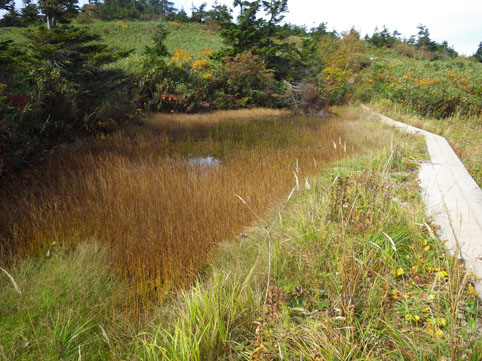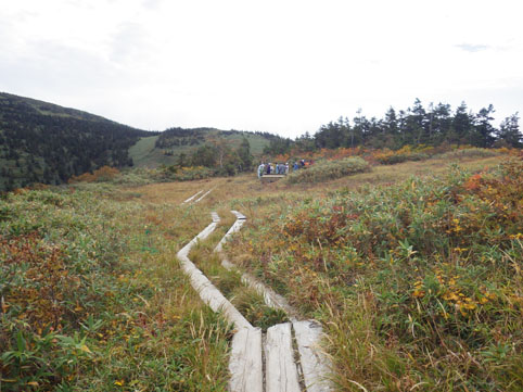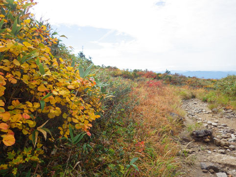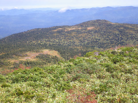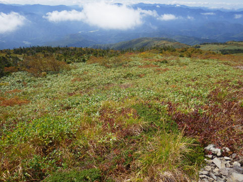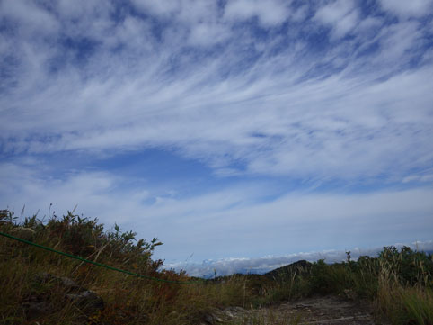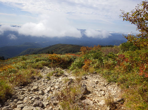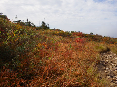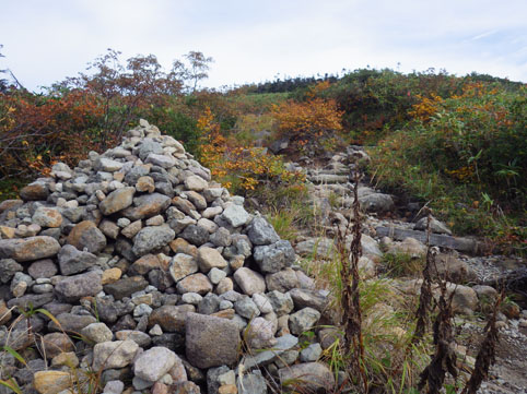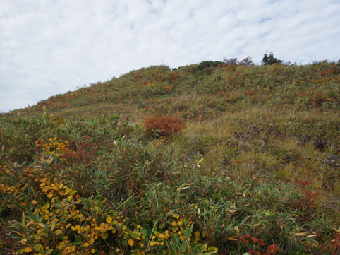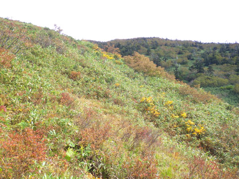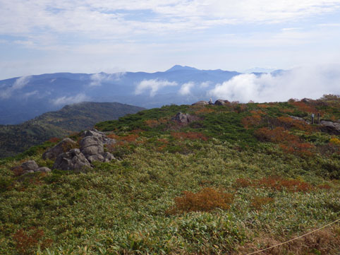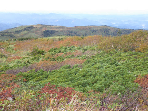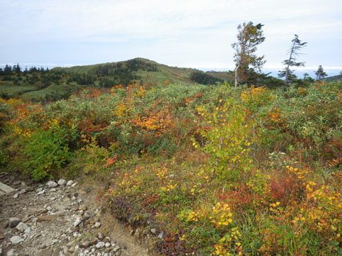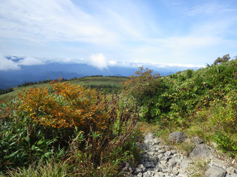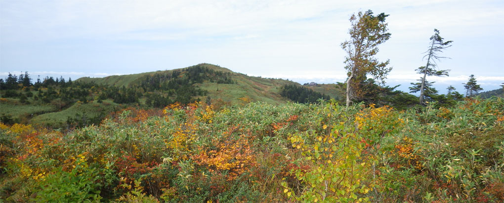 ![]() 森吉山の紅葉 所用で出かけた秋田県 紅葉には早いと思いつつ森吉山へ行ってきました ゴンドラ乗り場付近は殆ど色付きは在りません ![]() ウロコ雲が漂う 秋の空 空を見上げれば秋の雲が手招きしてる様に見える ![]() 稜線から見た森吉山 登山道(草紅葉) 山頂駅から数十分も歩くと分岐に出ます ![]() 分 岐(資材が置かれてます) 登山道の整備 分岐には登山道を整備するための資材が置かれてました 山頂方面に進むと数人の方が木道を直しています 汗して作業している方に感謝の気持ちがいっぱいになりました ありがとうございます ![]() 標高を上げると山肌が変わる 池 塘 ![]() 錦色の登山道 熊よけの鐘 途中で聞こえた鐘の音は之でした ![]() 避難小屋 道 標 避難小屋の脇に在る休憩用の椅子も新しい物になっていました 有りがたいですね! ![]() 笹に覆われた山肌 石 積(ケルン) 登山道わきに石積が在ります 多くの登山者が一つ一つ積上げたのでしょう ![]() 緑の笹と色付き始めた木々 遠望の峰を望む! ![]() そよ風の尾根を歩く! 草紅葉 ![]() 山頂からの展望 山 頂 山頂には数人の登山者が居ました 紅葉には早いためか人気の森吉山も人影が少ないですね~ ![]() 鳥海山(中央に尖がり・・?) 岩手山(右奥に早池峰山) 雲間に見え隠れする遠望の山々 ![]() 山頂直下の景色 ヒバクラ岳方面 ![]() 緑が濃い山肌 錦色の山肌 同じ山でも二分される山容が見られました ![]() 登山道を飾る紅葉 避難小屋方面を望む! 山頂駅から上は紅葉が始まっていましたが 下は殆ど色付きは在りませんでした 月半ばあたりから本格的な紅葉シーズンになるのでしょうか・・? 動画をご覧くださいね! 戻る |