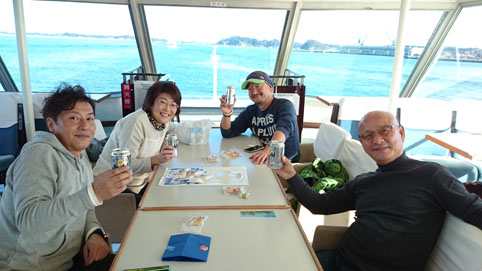 ![]() 松島港 週末を利用してカキ小屋へ 宮城の良いとこ散策しようと楽しい仲間と出かけました ![]() 塩釜のカキ小屋 蒸します 午前11時の開店に合わせてカキ小屋へ入ります 東塩釜駅からは歩いて10分くらいのところに在りました ![]() 食べごろ 生 酒 食べ放題45分コース 蒸し上がるまで待てないので生ビールを注文するが 出てきた銀カップがやけに軽い・・? あれ~ Bは入ってるかな 飲むほどにわかる殆ど泡でした・・・笑 その後はワインに変わり、行き着くところは生酒です 少しサラサラしてるが美味い酒でした ![]() 観光船(あすか) 展望室 小屋を出てから塩釜港へ行きます 港の売店で美味しいツマミを見つけビール&チュウハイを持ち込む 塩釜港から松島までの船旅(50分)を楽しむことになりました 展望席は別料金がかかりますが今日は半額で良いとの事です 広い空間は私たちの貸し切りに 誰も居ない展望室で宴会が始まりました・・・笑 ![]() 海原の船 大型船 海原を行き交う船は釣り船から大型貨物船まで波を蹴散らし進みます ![]() 島 々 船上から 船上からは松島湾の島々が真っ青な空と海に浮かんでた ![]() 展望デッキ(ムッティさん・タッシーさん・Gonちゃん) Sei 展望デッキに出て暫しくつろぎます 皆さんテンションあげあげ・・・笑 ![]() 松島港 瑞巌寺の紅葉 50分の旅も終わり船を下りた 港の酒屋さんで夜の部の美味いお酒をゲットします 名物のカレーパンも手にしてる 夜中に食べる保存食か? ![]() 瑞巌寺 観音様 瑞巌寺に訪れたのも数十年ぶりです 歴史を物語る参道は残念ながら一部が舗装路と変わり果てていました ![]() 大きな子供・・・? 松島駅 境内を探索してから路地裏を歩きます 岩を削って出来てる庭や風情ある街並みを見ることが出来ました その後 松島駅から電車に乗り仙台市内へ戻ります 街で飲む予定でしたが時間切れでタッシーさん宅へ直行しました ![]() 2016 忘年会 仙台市内の夜景 今日の〆は2016年、忘年会です・・・笑 ムッティさんとタッシーさんの手料理で酒が進む ワインにチュウハイ&ウイスキー 港で買った日本酒と・・・ 午前11時(カキ小屋)から飲み始まって寝たのが夜中の12時でした 仲間と過ごした楽しい一日が終わる 動画をご覧くださいね! 戻る |