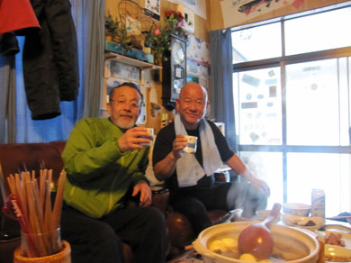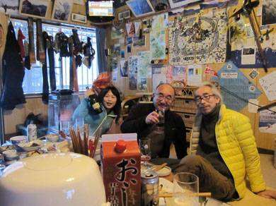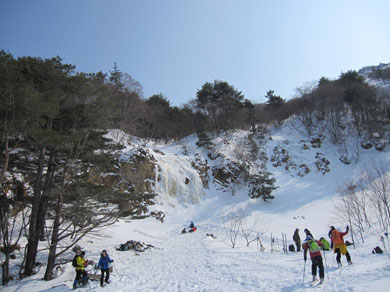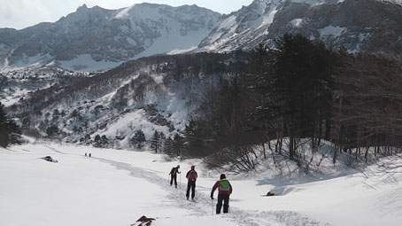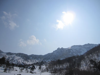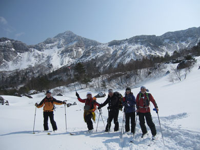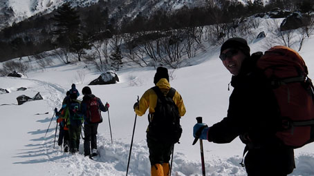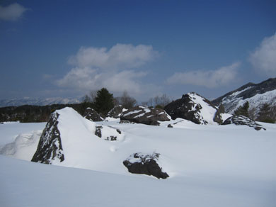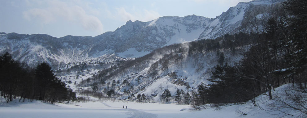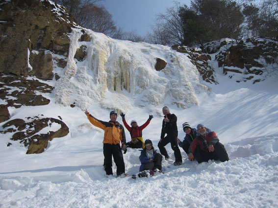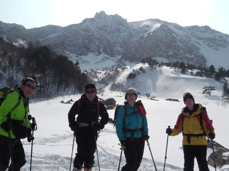 ![]() 磐梯山噴火壁(裏磐梯の展望) 久しぶりの好天に誘われてイエローフオールに来ました 風もなく穏やかな気候は汗ばむくらいです ![]() ゲレンデTOP 銅沼を歩く (Haruさん・Gonちゃん・Satiさん・タッシーさん・Bunちゃん) ゲレンデTOPで準備をしていると元気な団体さんが居ました その後 道中で挨拶を交わすと・・・? ![]() 木の実と影絵 櫛ヶ峰(中央) 雪面の影絵を見るのは今シーズン初めてか! 遠望には串ヶ峰の尖がりが天を衝く風景が広がってました ![]() 噴 煙 青空と白銀の世界 銅沼から見る壁面からは噴煙が出ています 真っ白な雪面にトレースが数本走りイエローフオールに案内してくれた ![]() 新発田高校(山岳部) 後方はMasuzo先生 此処でゲレンデTOPに居ました団体さんに追い越されました 新発田高校山岳部のメンバーさんです 元気な挨拶と笑顔が爽快な気持ちにしてくれた ![]() 天狗岩の尖がり 噴 石 銅沼を渡り噴石が転がる凸部を過ぎると景色が変わります ![]() 元気なメンバー イエローフオール到着 目的の場所へ着きました ![]() Haruさん・Sei・Satiさん・タッシーさん・Gonちゃん・Bunちゃん フオールは小ぶりだが何度来ても素晴らしいところです ![]() 新発田高校御一行様 下 山 顧問のMasuzo先生は以前に会ってる記憶があり 話しかけるが・・・? 定かな回答は出なかった・・・笑 多分 数年前に此処で会ったのでしょうかね! 之からソースカツ丼を食べて帰りますと別れるも駐車場で3度目の再会でした 皆さんまた逢う日を楽しみにしています ![]() Takaちゃん(右から二人目)と仲間 檜原湖&吾妻山の展望 偶然に会ったTakaちゃん 約束もないのに、スタート時間がずれた位で休憩時間はご一緒出来ました 本当に山は狭いですね~ 山小屋へ ↓ ![]() Hiroちゃん・タッシーさん・Shunさん 豪華な刺身 今日のお泊りは山小屋です 箕輪のゲレンデで滑りを楽しんんだ後に合流したのはShunさんとHiroちゃん 小屋ではてんこ盛りの料理が並びます Shunさんが刺身を捌き Satiさんが千葉の特産を Gonちゃんのおでん等々・・・ ![]() Bunちゃん&Sei タッシーさん・Satiさん・Gonちゃん・Hiroちゃん BunちゃんとSeiは焼酎のお湯割りでご機嫌です 食べて飲んで本日の店じまいは10:30分でした 早いの~ 動画をご覧くださいね! 戻る |