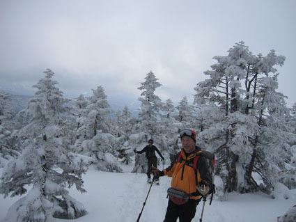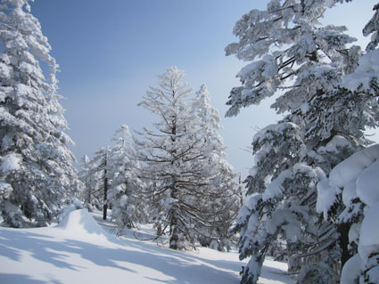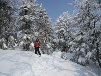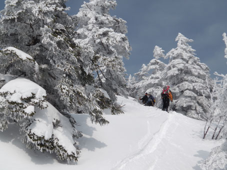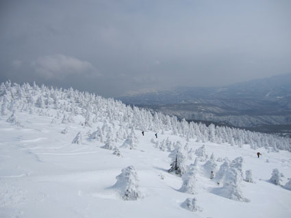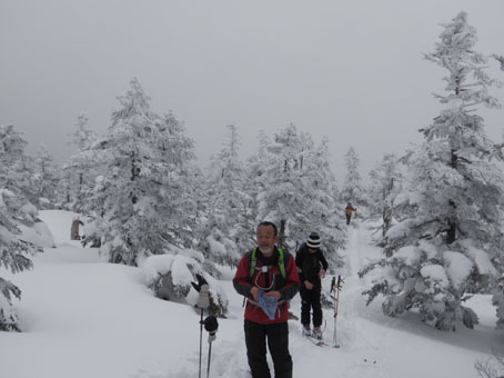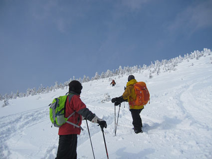 ![]() 山頂直下の痩せたモンスター 今回を逃したら西吾妻山のモンスターは見ることが出来ないと気合の計画です スタート時は風も有りましたが時間とともに好天になる ![]() 青空が覗く 久しぶりの歩きに汗する 天を仰げば青い空も見える 天候不良で山が遠のいてた為に体が付いて来ません・・・苦笑 ![]() 木々の空間が広くなる 偽ピークが現れた 登り始めはTOPを歩いていましたが途中で後続に追い越されます 綺麗なトレースは踏み固められて歩きやすい ありがとうございますと遠慮なく使わせて頂きました ![]() 山頂(Bunちゃん・Haruさん・Nobu君・Sei~右端にGonちゃん) 山頂に着いた時はガスが動き展望は無かったが 休んでる間に雲が去り空間が広がる ![]() 山頂から磐梯山方面 山頂のモンスター 少しずつ山並みが現れた 山頂の可愛い小さな樹氷に心が和みます ![]() 西吾妻山(中央の黒い粒)避難小屋 樹 氷 モンスターは痩せ細り圧巻の姿は無かったが 今年も吾妻山の冬景色を堪能でき喜びをかみしめることが出来ました ![]() オープンバーン トレースを振り返る 山頂直下のオープンバーンを滑りトレースを振り返る 雪不足で短い期間のBCスキーですが吾妻山に感謝の一日でした ![]() 左奥に安達太良山が見えた 適度な林間 下山時に安達太良山の姿を捉え 林間には適度な空間があり粉だまりを楽しむことが出来ます ![]() 雪化粧 初BCスキーのBunちゃん 計画では南西尾根を下る予定でしたが 木々の埋まり具合などを見て山頂ピストンに切り替え滑降を楽しみました ![]() 休 憩 ツリーホールに! 下山時にツリーホールに落ちた初BCスキーのBunちゃん もがきながら上がるなど山の洗礼を受ける! ![]() Bunちゃん無事に帰還しました 下山時の吾妻山 天候にも恵まれてPM2:50分にゲレンデに到着する 久しぶりの山は疲れますね~ 今日も自然の醍醐味を味わうことが出来ました Haruさん・Nobu君・Bunちゃん・Gonちゃんお疲れ様です ・・・Sei・・・ 動画をご覧くださいね! 戻る |