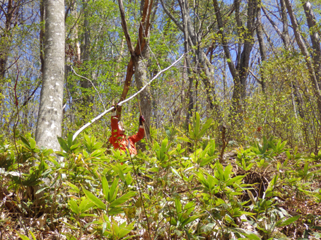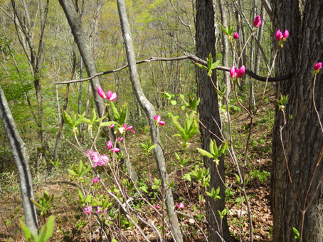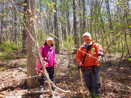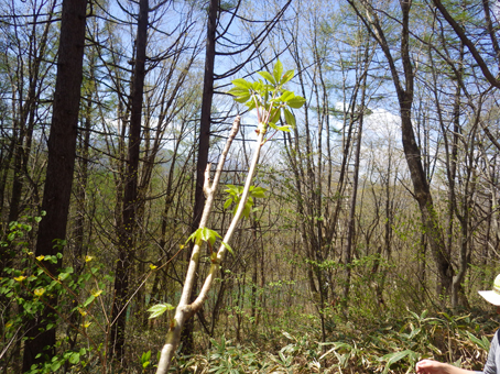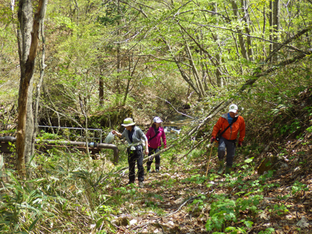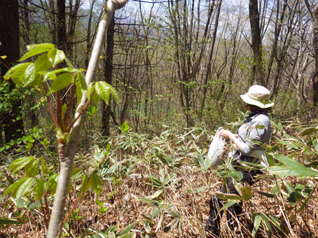 ![]() ツツジの咲く斜面を歩く 晴天の山を歩くのは気持ちがいい 「犬も歩けば棒に当たる」ではないが山を歩けば旬の山菜に当たる ![]() 某 スキー場 新緑の山 スキー場のゲレンデを登り適地を探る ![]() 笹薮を歩くGonちゃん 磐梯山 笹薮を越えたり斜面を登ったりと汗する動きだ! 遠望には磐梯山が青空に鎮座していました ![]() コシアブラ 貯水池がありました 目指すはコシアブラですが タラノメやワラビも出てます ![]() 腰篭を付けて彷徨う 食べごろのコシアブラ 食べごろの新芽を見つけては笑顔で摘み取る ![]() 新緑の山は気持ちがいい! Satiさん~タッシーさん 採ることに夢中にはならず、山歩きも楽しみの一つです ![]() しどまる若木 沢を渡り 若木を見つけては、しどめて新芽を頂くタッシーさん ![]() 山菜を探す 芽吹いたシダ 沢を渡り林道を行くと 隣りの斜面にもかかわらず山菜の姿が在りません・・・? ![]() ムラサキツツジが咲いてます 適量の山菜(コシアブラ・タラノメ・ウド・ワラビ)が採れました 山歩きは楽しいですね~ 動画をご覧くださいね! 戻る |