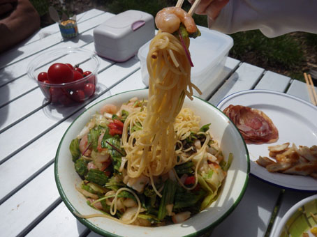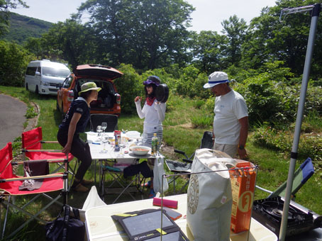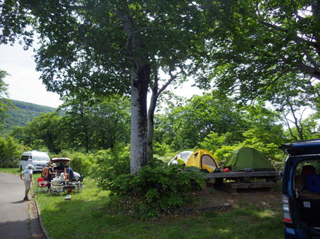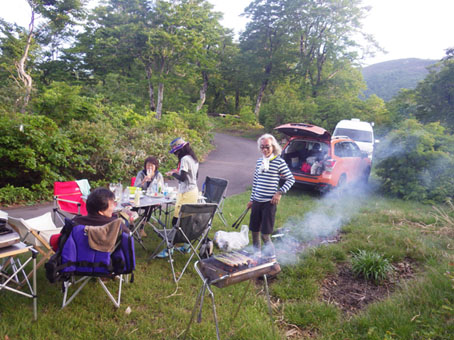 ![]() 須川湖キャンプ場 木陰の在る須川湖キャンプ場は栗駒山の麓にある 素晴らしい景観の場所だ 山あり、湖あり、湿原あり、温泉あり ネマガリタケの宝庫でもあります ![]() 須川湖 キャンプサイト 真っ青な湖面にさざ波がたち、気持ちいい風が頬を撫でる 今回のキャンプは梅雨入り前の素晴らしい天候に恵まれました ![]() 木陰が多い 奥に見える栗駒山 木陰が多いサイトは日差しも遮られ過ごしやすい 湖面越しに見える栗駒山や秣岳の稜線が水面に映し出されています ![]() 湖畔のサイトで寛ぐ(Gonちゃん・Hiroちゃん・タッシーさん) 高床のテン場 お昼頃に着いた私たちは 寝床やテーブルをセットして早々に飲み始める・・・笑 ![]() 満水の湖面 カヤックを組み立てる 静かな湖面に誘われてカヤックを組み立てました ![]() ボート係留場 カヤックに! カヤックを入れる何時もの場所は水量が多く入れない 今日は係留場からの入水です 透き通るような水は湖底まで見えそうだ 魚が居ればSeiは釣りに没頭するところですが ・・・ここに魚はいない・・・苦笑 ![]() Hiroちゃん~モカパパ~Shunさん ネマガリタケを焼く カヤック遊びから帰って来て焼き物や料理を作ります ![]() 食べて飲んで タッシーさん&Sei 午後になると酒の量も進み元気が爆発! 子供の様にじゃれ合う姿も在りました ![]() パスタ カマ焼 Shunさんの料理が美味い 泡やワインで喉越しもよくなり、パスタやカマ焼を食べまくります ![]() ベーコン炒め ゆで卵とモカパパ ベーコンのタケノコ&コーン炒めを作るHiroちゃん 酒のつまみには最高です 初日は食べて飲んでカヤックに乗り遊びまくり・・・笑 二日目は食事を終えて直ぐに栗駒連山の秣岳に登りました 皆さん有意義な二日間をありがとうございました ・・・Sei・・・ 動画をご覧くださいね! 戻る |