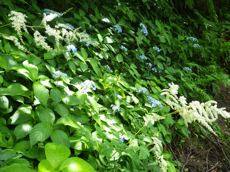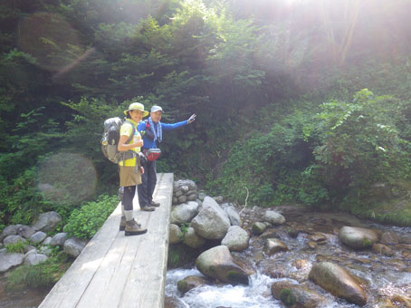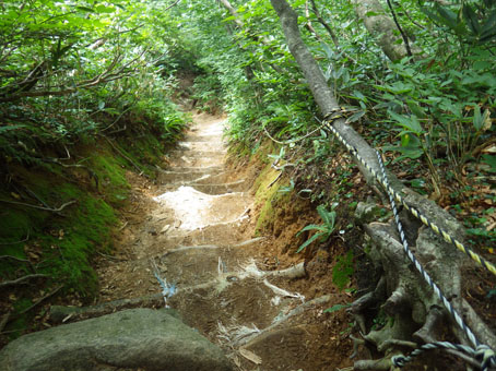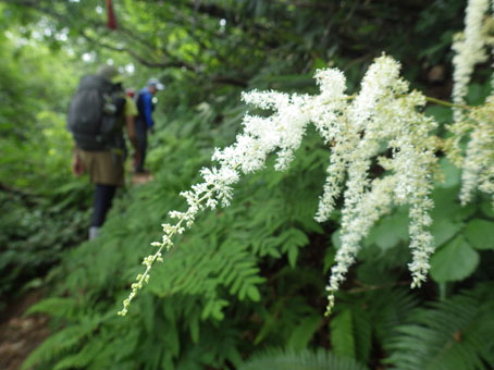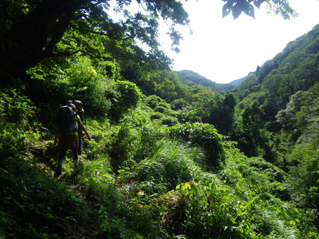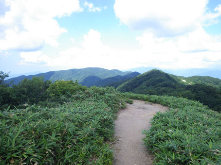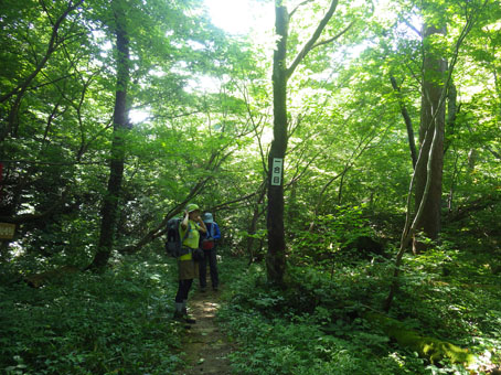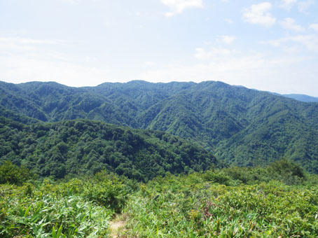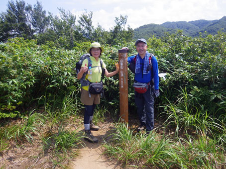 ![]() ワサビ山(山頂からの風景) 30度を超す暑さの中、新潟県に在る松平山~五頭山の周回コースへ来ました 郡山を出たのはAM6時 登山口にはAM8時40分到着です ![]() 魚留登山口 沢を渡る 魚留登山口の案内板には上級者コースの文字がある 低山ではあるが手強い様子です・・・笑 ![]() 魚留の滝 一合目 魚留の滝は溢れんばかりの流水だ 渓流釣りが大好きな私はイワナの姿を追うが・・・? ![]() 最初に現れた道標 沢沿いを登る 沢沿いを登る道をしばらく歩きます 沢の音が聞こえなくなるころには急斜面の登山道に変わった ![]() 登山道に咲く花・・? ワサビ山(Gonちゃn~Haruさん) 約一時間半の道のりでワサビ山に着きます 結構な斜度に暑さも加わり絞られる歩きでした ![]() Sei~Haruさん 五頭連山 此処までの尾根歩きは展望もなく、 時期的に高山の花も少ない為に無言の登りになります・・・苦笑 ![]() 越後平野 登山道の花 ワサビ山のピークから越後平野が眼下に広がり 遠望には角田山や弥彦山も見ることが出来ました ![]() 尾根を登る 登山道の花 ワサビ山から一旦下り松平山を目指す ![]() 雷清水 松平山(Haruさん~Gonちゃん) 松平山の手前に在る雷清水の道標を見るも 下る時間も読めないために通過しました 山頂にはAM11:20分に到着 此処では長めの休憩(泡タイム)を取ることにします ![]() 松平山のSei ヤマアジサイ 山頂は木立に覆われてて展望は良くありません ![]() 大荒川山 道の椅子 五頭山へ向かう稜線はアップダウンが繰り返される なだらかな尾根に大荒川山の道標在り 疲れがたまったところに格好の木が現れた 丁度いいと腰を下ろすGonちゃんの姿が在りました ![]() 蝶の様な花 中ノ沢分岐 花の少ない山歩きで目を引いたのは蝶の様に見えた花です 中ノ沢の分岐を過ぎると五頭山 ![]() 五頭山(三等三角点) 三又路分岐 五頭山に着いたのはPM1:20分 表情からも疲れが見えるようになる、楽しみのプシュッも乗り気がない様でした ![]() 稜 線 三の峰・・・? 五頭山は一の峰から五の峰と5ッの峰を持つ連山です 登山道からピークへ登る道が在り展望を楽しむことが出来ました ![]() 五頭山 石碑 登山道 ピークは広さが異なる連山だ 急な道を下り赤安山へと向かいます ![]() 三の峰避難小屋 内 部 途ちゅには避難小屋が在りました 中は綺麗に整理整頓されてて気持ちがいい小屋です ![]() 五の峰 友情の鐘 下山路に在る最後の峰は五の峰でだ 此処は広い展望の場所です 友情の鐘を鳴らしてピークを後にしました ![]() 道 標 赤安山(稜線に在る道標) 五の峰から先の下りは斜度があり疲れた体は注意が必要です 赤安山に着いた時は既にPM3:35分でコースタイムをオーバーしてました 暑さと風のない低山歩きで累計標高差1188mと過酷な歩きとなる! でもでも素晴らしい変化に富んだ山歩きでした 動画をご覧くださいね! 戻る |