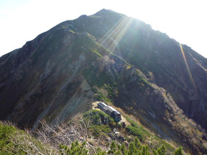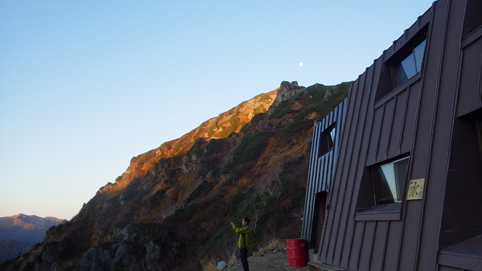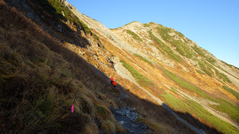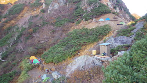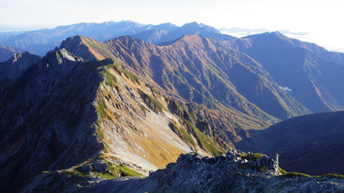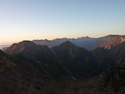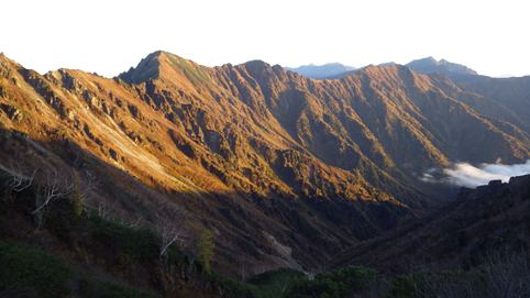 ![]() 峠の朝(中央に富士山) 昨晩は屋根を叩く雨音を聞きながら寝床に入る 夜中に目を覚ますと満天の星空が窓から見えた ぼーと空を眺める ![]() 穂高岳~槍ヶ岳方面の山並み 針ノ木小屋 夜明けと供に外へ出た 既に山人たちがカメラ片手に朝日に輝く山並みを捉えています ![]() テン場 針ノ木岳 AM6時に小屋を出て山頂へ向かう 小屋の脇に在るテン場では山家さんが忙しげに動いていた ![]() スバリ岳~赤沢岳方面の尾根 朝日に輝く針ノ木 登山道を進むと太陽の日差しが強く肌に刺す アルプスの山々も眩し気に瞬いて得るかの様に見えた ![]() 山頂(Sei~Su-さん) Gonちゃん 小屋を出てから55分程で山頂に着く、素晴らしい眺めだ 標高差1400m強を登った者に送られるご褒美を、手のひらに乗せた! 暫くぶりにアルプスの山頂に立ち喜びを爆発させます・・・笑 ![]() 鋭い尾根が連なる 眼下の黒部ダム 眼下に連なる鋭い尾根や黒部ダムを眺める! そして惜しむように山頂を後にした ![]() チングルマ 蓮華岳(コルに針ノ木小屋) 下山路のチングルマが手を振り・・・ 眼下に見える針ノ木小屋の奥には蓮華岳の姿が朝日に輝いていました ![]() 下山前(Gonちゃん~Su-さん~Sei) 峠の道標(Gonちゃん~Su-さん) 小屋の前で記憶を映す、もう来れないかもと。。。 ![]() 道標のSei~Su-さん 峠の道標前でも時間をかけて思い出を作ります・・・笑 ![]() 下山路を眼下に! 下山開始 AM8:30分下山開始 昨日は見えなかった山々も今日は惜しみなく姿を現してる ![]() 岩に張り付く木々の紅葉 残雪の在る大沢 難所の多い登山道を慎重に下りました 山肌を被ってる低木の木々が見事な色付きです ![]() 沢に転がる大きな石 林道に着いた 大沢小屋を過ぎて林道に出た時は爽やかな風が吹いていました 昨日、登山道であったのは2人だけでしたが! 今日登って来た山家さんは小屋に入りきれないくらいの人数です 天気がいいと違いますね~ 小屋の営業は明日で終了との事でした 動画をご覧くださいね! 戻る |