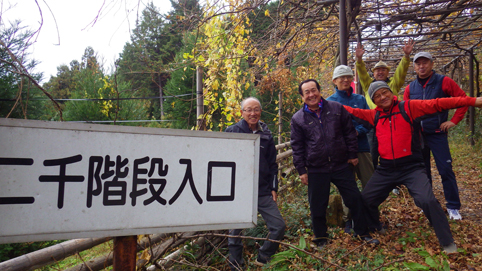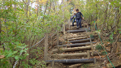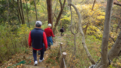 ![]() 山頂からの展望 竹沼から移動して向かった先は子王山です 2000階段の急阪で知られた場所だ ![]() 登山口の茶屋 カンザクラ 駐車場に着くと味の在る古民家風の茶屋が在ります 広場にはカンザクラが咲いてた ![]() 野鳥の図鑑 登山口 野鳥の図鑑や案内板を見てスタートします 短い距離だが急な階段に興味が湧く ![]() 藤棚を通る 地蔵さん 手入れの行き届いた藤棚の下を通り進むます 道に並ぶ地蔵さんが安全を祈ってくれてる様だ ![]() 杉林の道 登山道に在る階段 杉林の登山道には木で作られた階段が並んでいます ![]() 急 登 鎖 場・・・? 斜度の在る場所にはロープが張られ 手すりの階段も現れた ![]() 道 標 1000段目 1000段目には道標が在ります ![]() 分 岐 休 憩 分岐を過ぎると間もなく案内板の在る空間に出た 其処で少し休みます ![]() 開けた場所からの展望 山頂に在る展望図 程なくして山頂に着きました 雲海に浮かぶ榛名山や連なる山を見ることが出来ます ![]() 山頂にて(Sadaさん・Zenちゃん・Su-さん・Hodakaさん・Gonちゃん&Sei) 7名のはずが一人足りない・・・? ![]() 下山路(女坂)のモミジ 案内板 下山は女坂を行くことにした ![]() 急な階段 下 山 里山だが変化が在り楽しい山である! 動画をご覧くださいね! 戻る |