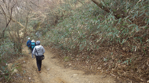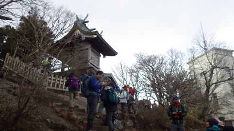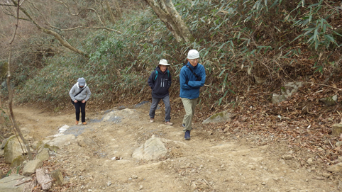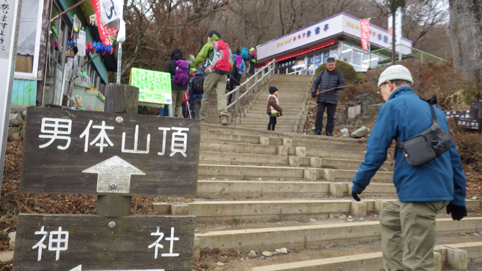 ![]() ユースホステルコースの登山道 平潟で忘年会を楽しんだ私たちは筑波山へ来ました 今年最後の山歩きです ![]() 筑波山 登山口 予定では、つつじヶ丘駅よりロープウェイで山頂へ行くはずでしたが! 林道へ迷い込みユースホステル跡の登山口から登りました・・・笑 ![]() 案内板 落葉した林の道 何度か来てる筑波山ですが初めてのルートを楽しみます 案内板を見ると1時間ぐらいで山頂へ行けるようだ ![]() ベンチ 道 標 途中にベンチが二ヶ所に在り道も広く歩きやすい ![]() 枯れた木が目立ちます 軽装で登る 山シーズンも終わったのかと思うほど静かで・・・ 登山者とは数人会っただけです ![]() 御幸ヶ原直下の階段 休憩の時 御幸ヶ原に出る直下は斜度が増し階段が作られていました ![]() 御幸ヶ原(茶屋) 山頂駅 茶屋の在る広場に来ると結構な人が居ます ![]() 山頂へ 山頂の山人 山頂への道は数珠繋ぎで下る人とすれ違うのに足止めされた ロープウェイやケーブルカーを利用して山頂を目指す人が多いのでしょうね・・・? ![]() 神社前にて! 眼下を望む 男体山神社でお参りをして展望を楽しみます 遠望にはスカイツリーも見えた ![]() 奥に見える女体山 男体山 対面に見える女体山へは行かないで降りることにします なぜなら・・・笑 ![]() 山菜蕎麦 ケンチンうどん 御幸ヶ原に在る茶屋で昼飯に! 冷えた体に暖かい食べ物は助かります ふくれみかん一味をかけて食べた・・・美味い・・・温まるのでした ![]() 下 山 巨大な根 女体山を振り返り登らずに下山しました 短時間の筑波山歩きでしたが師走の山を楽しむ! Su-さん Sadaさん Gonちゃん 来年も宜しくお願い致します 動画をご覧くださいね! 戻る |