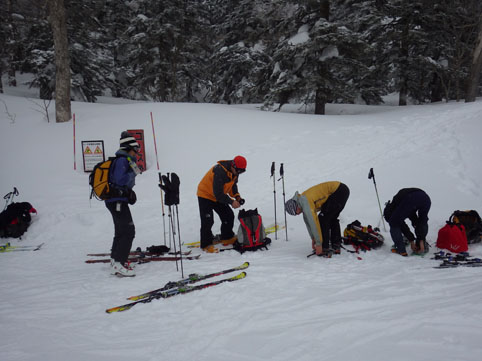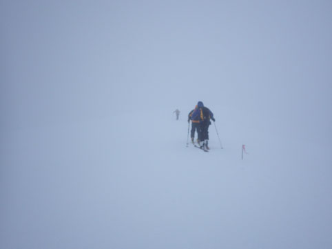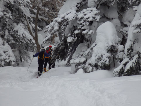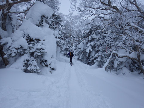 ![]() 山頂直下の山肌 今日は西吾妻山の樹氷探索です 数日前の気温上昇でモンスターを見ることが出来るか心配だ ![]() ゲレンデTOP スタート デコのゲレンデTOPには登山者やBCスキーヤーの姿が在ります 私たちも準備をしてスタートした ![]() オオシラビソの樹林帯 ダケカンバ 標高1600m付近のツリーは雪がかぶってる程度です ![]() トレースを利用 樹 氷 先行者のトレースを使わせていただき標高を上げるも 怪獣の姿は現れません! 昨日の気温が低かった為に木々には樹氷の花が咲いていました ![]() 最中の雪面 休 憩 雪面にストックを刺すとスカッと抜けます 完全に最中状態の斜面に下りの苦戦が予想された ![]() 標高上げても! ふにゃモンスター 標高1800m付近に来てもツリーの様子はご覧の通り 偽ピークを通過するも成長した樹氷が現れませんでした ![]() ホワイトアウト 山頂(Sei~Gonちゃん~タッシーさん~Haruさん) 山頂直下のオープンバーン付近はホワイトアウト状態です AM11:40分に山頂に着きました 山頂には数十人の山家さんが居ます しかしガスと寒さの為に休んでる方の姿は在りません! 周りを見渡すも目的のモンスターはガスの中で目視が困難だ 微かに雪の塊がガスに浮かんで見えた ![]() 山頂の樹氷 モンスター 私たちも小休憩の後に下山開始 オープンバーン付近はカリカリの斜面にホワイトアウトです 林間に入るも最中の斜面に板は操縦不能だ 前を行くHaruさんとGonちゃんがツリーの中を滑降してゆきます 私は数かい転び立ち上がるたびに疲労困憊だ ゲレンデTOP手前で板を外して壺足で下山してるとHaruさんが板を持ってくれた・・・苦笑 いくら最中雪と言っても此処まで疲れたのは初めての様な気がいたします まだまだ70歳と体力に自信があったはずですが・・・? 之からは計画範囲(状況による)を絞らなくてはならないと反省の一日となりました Haruさん タッシーさん Gonちゃん お世話になりました 山小屋にて! ![]() 生ラーメン コーンバター 肉 鍋 下山後は山小屋へ直行です 疲労困憊の体に注がれるビールの味は最高だ 美味い 本当にうまい こんなに痺れる味は暫くぶりです あまりビールは得意でないSEI 何杯も なんども 注がれるビールを口に運びました タッシーさんと Gonちゃんが作ってくれた料理をモクモクと食べる・・・笑 山の疲れも取れた頃に睡魔に襲われ眠りに着いた ご馳走様でした Sei 動画をご覧くださいね! 戻る |