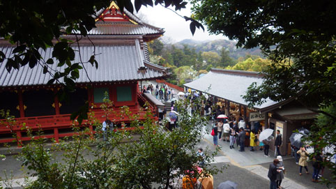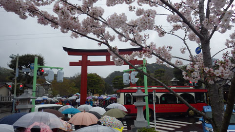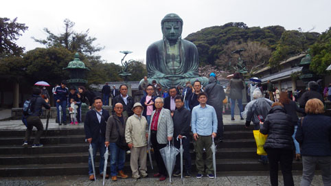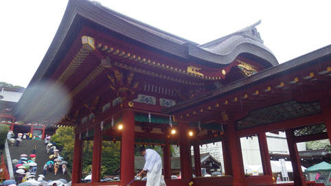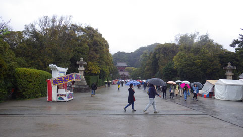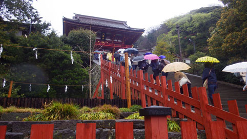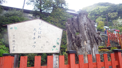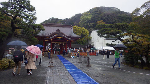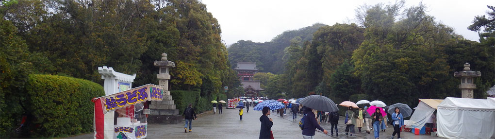 ![]() 鶴岡八幡宮境内 横浜横須賀道を走り鎌倉に入りました 今も雨が降り続いています ![]() 鎌倉大仏(入口) 宗 指 高さ11.31mの大仏は鎌倉で唯一の国宝。大仏がいつ、 何の目的で造られることになったのか定かではないが、 現在の金銅仏は、建長4年(1252年)に製造が開始。 完成当時は全身に金箔が施され、大仏殿に安置されていたとされ、 その後、地震や津波で大仏殿が崩れ、露座の大仏になった。 境内の観月堂は李王朝の月宮殿を移築したもので 、その脇に歌人・与謝野晶子が大仏の魅力を詠った歌碑もある。 光徳院 HPより抜粋 ![]() 賑わう観光客 桜の境内 鎌倉大仏様の祀られている境内に行くと 此処は海外かな・・・? と 思うほど外国人の観光客でにぎわっています ![]() チョット記念に! 大仏様と仲間 満開に咲いてる桜の下で・・・笑 大仏様の前では仲間と記念写真を撮りました ![]() 鎮座する大仏様 路地の六地蔵 鎮座する姿は神々しく拝観することにより心が和みます 八幡宮まで移動する道路わきには六地蔵が並んでました 走行するバスの中から シャッターを切りますがボケ写真に・・・苦笑 ![]() 昼食は峰元本店「精進料理」 昼食は精進料理です しゃれた器に盛られた料理の数々・・・ 次々と美味しい食べ物が出てきて味の違いを堪能できました ![]() 若宮大路 さくら並木 車道から一段高くなってる路を歩き 桜並木などを散策して鶴岡八幡宮に行きます ![]() 鶴岡八幡宮鳥居 定 八幡宮は、鎌倉をはじめ大分の「宇佐神宮」や京都府の「石清水八幡宮」など、 この鶴岡八幡宮も元々は別の場所にありました。 八幡宮HPより抜粋 ![]() 太鼓橋 参道に架かる橋 太鼓橋を横に見て八幡宮境内に進んだ ![]() さくら散る 本宮参道 花弁が浮かぶ水路を眺めて本宮へ 此のあたりから雨が本降りになってきました ![]() 本殿に続く参道 舞 殿 舞殿では忙し気に祭事の準備をしてます・・・? ![]() 折れた大銀杏 本宮(本殿) 本殿に登る階段脇には大銀杏の折れた幹が祀られてた 側には小さなイチョウの木が在ります 大銀杏の子孫なんでしょうね! ![]() 本宮(参拝者) 丸山稲荷社 本宮で参拝を済ませて階段を奥に進むと 丸山稲荷社が在りました ![]() 本宮(丸山稲荷より望む) 奉 献 稲荷神社からは本宮の様子を知ることが出来ます 眼下には・・・ 多くの参拝者が列をなして思う事を祈願する姿が在りました 動画をご覧くださいね! 戻る |
