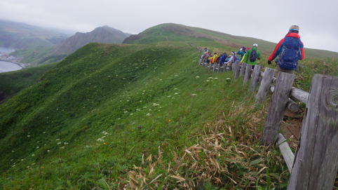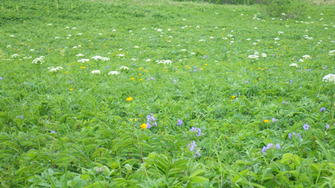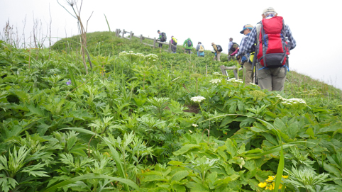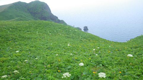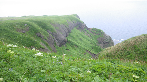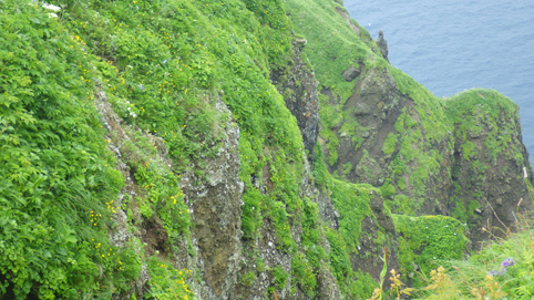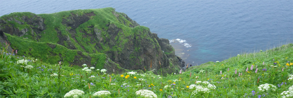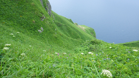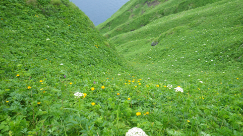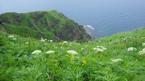 ![]() 礼文島(海岸線のお花畑) 花の島 礼文島に来ました 礼文島は海抜0メートルから高山植物が咲く島と案内されてます ![]() 桃岩遊歩道 案内板 知床から入り桃岩コースを歩きました ![]() 切り立つ岸壁 海岸線の風景 民家のわきを進み緩斜面の道を登ります 登り切ると海岸線が眼下に広がり見事な花の競演が現れた ![]() 花の遊歩道 岸壁に咲く花 足元の花々を鑑賞しながら進む! ![]() 花の競演 元地灯台 鮮やかな花が行く先々で待っててくれた ![]() 眼下に見える猫岩 谷に咲くキンバイなど 東にコースを取り進むと左は岸壁が切り立ち 右の丘には笹が生い茂り厳しい環境を知ることが出来ます ![]() 埋め尽くされた花の壁 道 標 ![]() 礼文島の花々・・・ほんの一部です ![]() ![]() 元地海岸 キンバイの咲く丘 礼文島はアルプスの2000m級の尾根を歩いてる様な 錯覚さえ覚える・・・ ![]() お花畑 桃岩コース 高山植物の花が歩き始めて直ぐに見れる 希少な島である ![]() 散策路 大地に咲く花 そよ風の吹く遊歩道は気持ちよく歩くことが出来ました ![]() 猫 岩 道 標 眼下に猫岩を見る 何となく ? 猫かな・・・笑 ![]() イゾイヌナズナの咲く谷 分 岐 大きく割れた谷には白い花が群生してます ![]() 桃岩道標 案内板 知床から入り桃岩展望台へ 歩き始めて2時間50分で着きました 動画をご覧くださいね! 戻る |