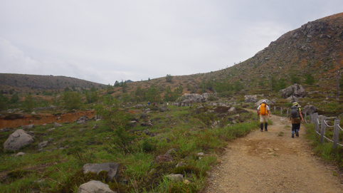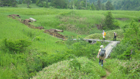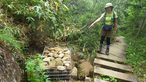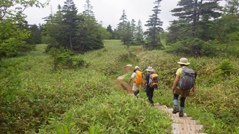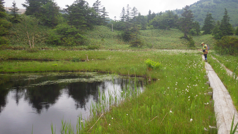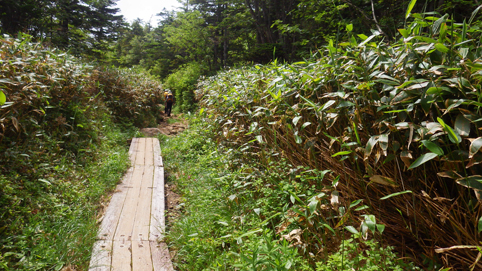 ![]() 芳ヶ平湿原(右に白根山) 7月の連休を利用して渋峠~白根山を歩きました 予報では午前中は持ちそうな天候です ![]() 渋 峠 登山口 白根レストハウス駐車場に車をデポして渋峠へ移動しました 峠駐車場から登る横手山へのリフトも動いてます 登山口には立派な道標が在りました ![]() 木 道 岩が目立つ登山道 芳ヶ平までは緩斜面の下りが続きます ![]() 案内板 ダマシ平 登山道は補修工事が行われてて資材が積まれてる場所が見られました ダマシ平に在る案内板を見ると冬山で迷いやすいと記されてます ![]() 整備された道 芳ヶ平 笹に覆われた登山道を下ってると開けた場所から芳ヶ平が現れました 動くガスの間から赤い屋根のヒュッテが見える ![]() 噴煙上げる白根山 笹に覆われた斜面 遠望には赤褐色の白根山が噴煙を上げ! 渋峠からの登山道は木々や笹に覆われてるが一変する景色が現れた ![]() 養生箇所 木道補修工事 此処まで来る間に数か所みられた土留め養生工事の箇所です 湿原の斜面も木道の取り換えが施されてました ![]() 湿原に咲くアヤメ ワタスゲとアヤメ 湿原に来るとワタスゲとアヤメが見事です ![]() 芳ヶ平湿原 案内板 真っ白く敷き詰められたワタスゲ原が圧巻だ ![]() 道 標 敷き詰められたワタスゲ 湿原に在る道標から池塘の在る遊歩道を一周します 池塘群の在る木道には多くの人影が在りました ![]() ワタスゲ(マクロ撮影) 池 塘 今回はワタスゲに癒されました・・・笑 ![]() 苔と小さな花 湿原と白根山 湿原の苔の中には赤い小さな花が咲いています ワタスゲに視界を奪われてましたが可愛いい花ですね~ ![]() 大沢川 芳ヶ平ヒュッテ 湿原を後にしてヒュッテを通り越すと沢が現れます 此処から先は山肌がガラリと変わった ![]() 道 標 水釜東斜面噴気帯 笹原の登山道を登ってゆくと木々の姿が消えます ![]() 白根山 渋峠草津歩道 立入禁止の看板が多くなり硫黄の匂いが鼻を衝き 噴煙も上がってる ![]() 荒涼とした山肌 逢ノ峰(中央) 満足に草木が生きることが出来ない環境の荒涼地帯・・・? ではありますが 何と カモシカ(動画に映像在り)が現れました この様な荒れた所にも生命が育まれてるのですね~ ![]() 湯釜への登山道 白根レストハウス レストハウスから入る湯釜への道は閉鎖! 渋峠から2時間30分で白根山レストハウス駐車場に着きました 動画をご覧くださいね! 戻る |