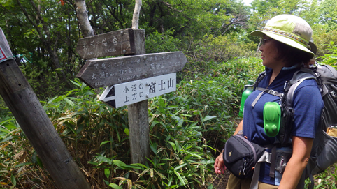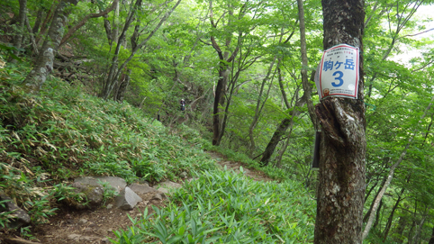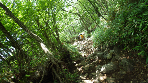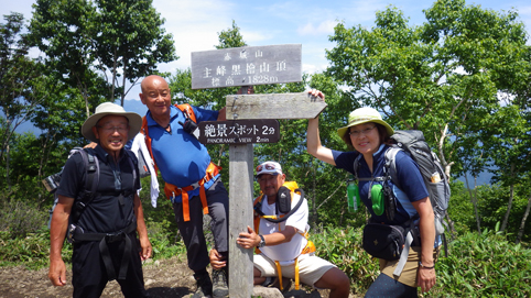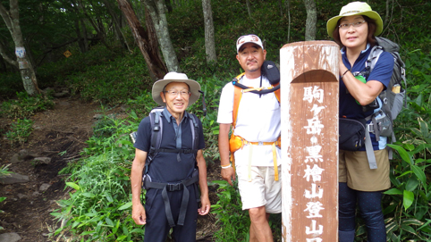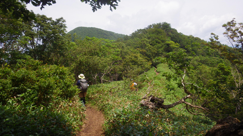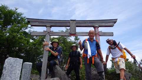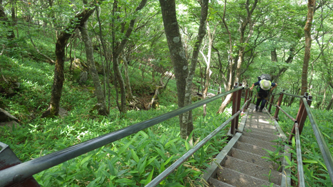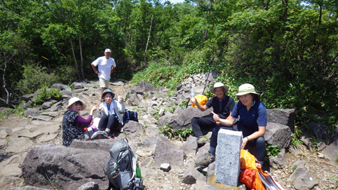 ![]() 山頂より北方の展望 赤城山の最高峰へ 予報に反して素晴らしい天候に恵まれました ![]() 登山口 案内板 大沼の畔に在る駐車場の脇に登山口が在ります ![]() 鉄の階段 道 標 登山道は所々に 急斜面ではあるが階段が作られてる為に歩きやすい ![]() 急な階段 展望の在る分岐 標高を稼ぎ45分ほどで尾根に在る分岐に出ました 東に開ける展望からは桐生市方面の山々が連なっています ![]() 駒ヶ岳(奥の尖がり) 山 頂(Su-さん・Sei・タッシーさん) 分岐から15分ほどで駒ヶ岳山頂に着きました ![]() 山頂のGonちゃん 大 沼 木立に囲まれたピークは長居は無用と先を急ぎます・・・笑 ![]() 黒檜山(後方) クルマユリ 稜線歩きは大沼からの吹き上げる風で心地いい歩きが出来た 足元に咲く一輪のクルマユリが笑みを誘う! ![]() 道 標 分 岐 黒檜山のピークが見えます 駒ヶ岳からはコルへ下り、登り返しの急登が待っている・・・苦笑 ![]() 小沼(右に地蔵岳) 鳥居の広場 稜線からは小沼や地蔵岳の風景が広がってます 鳥居の在る広場は山頂ではありません ![]() 道中の仲間と休憩 黒檜山 山頂 山頂手前の広場で道中一緒だった 東京からの山家さん、 AさんDさんと供に泡やワインを頂き休憩を楽しみます・・・笑 ![]() 眼下の展望 富士山の案内板 山頂から展望広場まで行きパノラマを堪能しました 下山時に富士山の看板を発見(小沼の上に見えると案内されてます) しかし 霞んだ空に富士山らしき姿を見ることはできなかった ![]() 下 山 地蔵岳(大沼) 下山路は急斜面の連続です 木の根が張めぐり、ゴロ石が多く歩きにくい! ![]() 赤城神社(手前) 啄木鳥橋 ただただ眼下に見える大沼を目指して下る! 昨日の白根山に続き赤城山の最高峰を歩く二日間の山旅は 天候にも恵まれ楽しい時を過ごす事が出来ました 動画をご覧くださいね! 戻る |