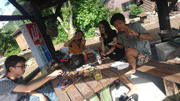 ![]() 盆休み初日(山小屋) 連休に孫たちが裏磐梯に集合致しました 朝から大忙しです・・・笑 ![]() 三々五々に集る Love 午前10:30分くらいには全員集合だ 勿論・・・Loveも仲間に入ります ![]() 檜原湖へ釣りに行く 大きな魚現れる 魚は釣り上げて食べる約束で檜原湖に出かけました 大きな魚が現れるがゲットならず・・・笑 小屋の脇でヤマメを二匹釣り面目が潰れづ爺は満足でした ![]() 東小屋にて! BBQ 腹が減ったと食べに入ります 焼肉を始め次々と出てくる食材を腕自慢が片っ端から料理開始! ![]() 手作餃子 釣り上げたヤマメ 焼き鳥 長男は腕自慢(自称)の料理人だ・・・爆笑 自宅ではタイ飯やシュウマイ・揚げ物など等を作りご馳走してくれます ![]() 丸鶏 ダッチオーブン 出てきたローストチキン 娘はダッチオーブン料理に初挑戦です チョット黒いが味は最高・・・ これでアウトドアーが好きになってくれれば嬉しいが ? ![]() 野菜を焼く パエリア 出来た パエリアを鍋で作るのも初めての様です 之がとっても美味しく次回からは免許皆伝ですね~ ![]() 花火を楽しむ孫たち! 夜はカラオケや花火などを楽しみ夜中の12時に終了だ 全員の集いは初めてで大成功です 孫も大きくなり之からは集まる機会も少なくなるのでしょうね” 楽しい孫とBBQでした ・・・Sei・・・ 戻る |