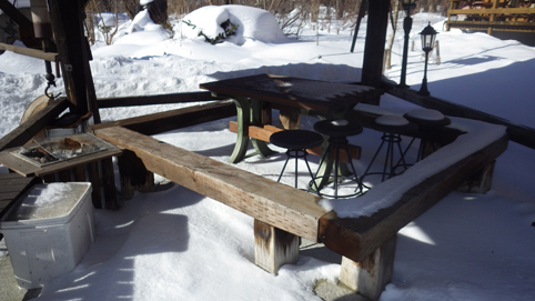 ![]() 山小屋の風景 2018年は孫と一緒に山小屋で過ごしました 部屋を暖めて待つこと3時間・・・ ![]() 2日は青空の天候 東小屋 正午頃に孫を乗せた車が着きます Loveが車を見つけて迎えに出ました ![]() 奥に見える吾妻山 影 絵 今日は素晴らしい天候です 奥に見える真っ白な山は吾妻山で裏庭の雪原には影絵が! ![]() 白布山 動物の足跡 小屋脇の白布山も青空に輪郭が際立っていました ![]() 裏庭の沢 Love イワナの泳ぐ沢は雪に埋まってる 日向で寛ぐLoveも孫が来るのを待ってる様子でした ![]() 東小屋の中 雪の中のテーブル 早朝から来てた為にカメラを手に風景を取りまくってます ![]() 石 窯 蕾膨らむ! 殆ど使われなくなった(以前は頻繁に出番あり)・・・笑 石窯も雪帽子をかぶっています ![]() 木の実 薪小屋 薪小屋の中から外を見ていると孫の車が来ました 真っ青な空には赤い木の実が泳いでる ![]() 鍋が並ぶ棚 焼き物 暖めてた小屋で早々に焼き物をします ![]() 雪の冷蔵庫 孫二人 冷蔵庫は外の雪だ 可愛い孫が思い思いに楽しむ姿が誇らしい爺です ![]() 孫と爺様 仲良し二人 並んで写真に納まる爺だ おそろいのセーターを着てるのは仲良し二人です ![]() Loveと寛ぐ 見つめるLove 山小屋を覗くとLoveと楽しい時間を過ごす姿を発見・・・笑 ![]() 午後の山小屋 元気な孫 日が傾く時間になっても青空が見える! 元気な孫たちが外で跳ねる姿が在りました ![]() 薪小屋 小屋の中で! 薪小屋は暖かく孫たちは殆どここで過ごしてます 飲んで 食べて 歌って 時間が過ぎるのを忘れて笑い声が弾けてました ![]() 夜中の様子 降り続く雪 日が落ちると突然に天候が荒れてきました ![]() コンコンと降る雪 夜 中 雪は降り続き車が埋まってゆくのがわかる 雪がやむ時間も在りましたが朝までに40cm位積もりました 朝方の車 雪化粧 昼頃まで様子を見てましたが天候はドンドン悪くなります 風も強くなりホワイトアウトの様子だ 此のままでは脱出できなくなると小屋を後にします・・・苦笑 孫と過ごしたお正月 今年も良いスタートが切れました 動画をご覧くださいね! 戻る |