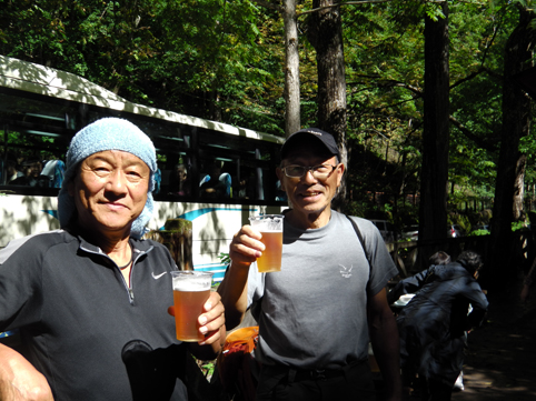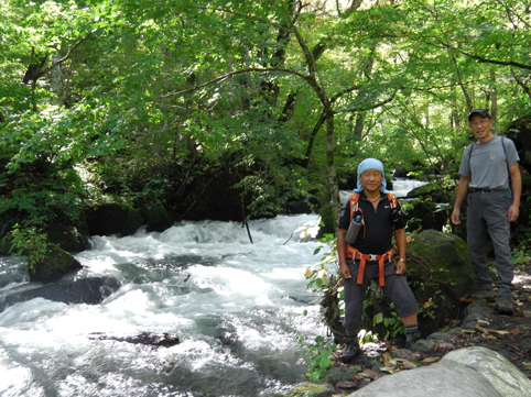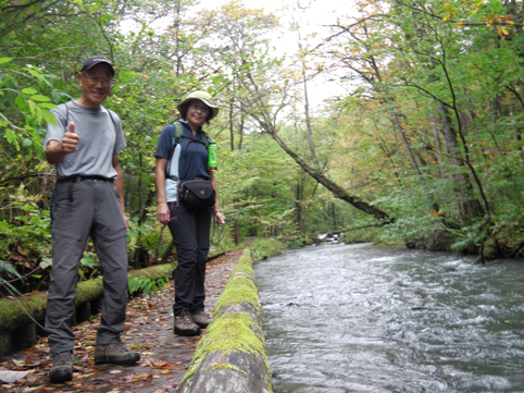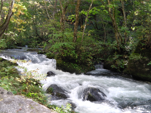 ![]() 奥入瀬渓流 6日の夜中から7日の早朝は暴風雨に見舞われる 十和田湖畔グランドホテルの窓からは大荒れの様子が見えます テレビから流れる予報を食い入るように見て 今日の計画を激論いたしました・・・笑 結果は11時過ぎには風雨も弱まるだろうと予想して AM10:30分に宿を出てバス停に向かいます ![]() バス停 石ヶ戸の流れ バス停には奥入瀬に行く観光客が十数人いました 未だ雨風が強い状態です ![]() 石ヶ戸の地ビール スタートのお祝い しかしバスに揺られて20数分目的地の石ヶ戸に着いた 此処で目の当たりにした景色 渓流の流れには木漏れ日が落ち 眺める空は青く 急激に好転した様子に気持ちがアップ お祝いのビールを片手に飲み干しスタートいたしました・・・笑 ![]() 案内板 曝 流 案内板を眺め 石ヶ戸から少し下流へ行き探索をします 奇麗な流れが気持ちをはやらせる ![]() 淀みの流れ 激 流 深いところでは流れが穏やかだが 岩場の急流には白波がたち気持ちの良い流れの音が聞こえます ![]() 気持ちもアップ 泳ぐイワナ 嬉しくなりお道化る姿が見られた せせらぎには奇麗なイワナが泳いでいます ![]() 屏風岩 遊歩道 此処までお天道様のお導きを頂いたと感謝の気持ちでいっぱいです 木々の隙間を見て青空に手を振るのでした ![]() 馬門岩 岩の前に立つ二人 道路にいったん出て馬門岩を見上げる 道を挟んでそそり立つ大岩が圧巻でした ![]() 道 標 まかどばし 途中に在る道標を見て先の距離を確かめる 何処までも気持ちの良い歩きです ![]() 阿修羅の流れ 淵に立つ! 奥入瀬の流れには幾つもの名所が在ります ![]() 飛金の流れ 線筋の滝 遡上するほどに滝が多く出てきた ![]() 雲井の滝 白布の滝 滝は水量が豊富で迫力があります ![]() 遊歩道の階段 木 道 遊歩道は川と道に挟まれる様に作られてた 階段在り 木道が出てきて歩みを止めれば絶景が広がる ![]() 玉簾の滝 白糸の滝 玉簾の滝は道路越しに在り遊歩道からは見にくい場所だ 白糸の滝が流れを強めて響きの良い音が聞こえる! ![]() 白糸の滝を背景に! 不老の滝 色付き始めた木々が流れに花を添えてくれた ![]() 九段の滝 百両橋 九段の滝は遊歩道から少し高いところに在ります 足を進め段差の在る岩の流れを見つめた ![]() 魚止の滝 銚子大滝 遊歩道の最後に現れたのが銚子大滝です 魚止めの滝と案内されてる様に奥入瀬の中で唯一の滝だ 豪快な流れと爆流に暫し佇み流れを見つめた 動画をご覧くださいね! 戻る |