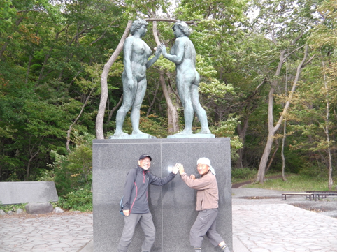 ![]() 十和田湖の紅葉 台風25号の真っただ中を旅に出ました 6日の早朝 郡山を出て十和利山へ登り 7日に奥入瀬渓流を歩き 8日は青森から福島まで10時間ひとっ走りです お泊りの宿「湖畔」 乙女の像 二日間お世話になりました宿の前で記録写真を撮り その足で湖畔に在る乙女の像へ立ち寄りました 十和田湖国立公園指定15周年を記念して、 昭和28年に建てられたこの「乙女の像」のブロンズ像は、 彫刻家であり詩人でもある高村光太郎の最後の作品としても知られ、 完成まで1年余りかかったと言われています。 上記は観光協会HPから抜粋致しました ![]() 船着き場の遊覧船 泊まった宿「後方」 昨日は大荒れで遊覧船は終日運休でした お泊りの宿は船着き場の湖畔に在り素晴らしい展望です ![]() 宿から眼下の景色 湖畔を散策 部屋から見る眼下の景色は十和田湖を背景に 紅葉の始まった木々が際立ち素晴らしい所でした ![]() 案内板 十和田神社 探索路には十和田神社が在りパワ~スポットの様です 湖畔からは見えない奥まった所で開運の小道を通って戻りました ![]() 展望台より「十和田湖」 十和田湖を一望 帰路に在る展望台に寄り十和田湖を一望します 最終日は朝から好天に恵まれて気持ちの良い一日となった ![]() 田沢湖「案内板」 辰子観音 次に寄ったところは田沢湖に在る辰子観音です そして車は湖畔に在る辰子像へと向かいました ![]() 田沢湖クニマス未来館 赤とんぼ 途中に在るクニマス未来館へ立ち寄り 茶屋でイワナの塩焼きを食べる チョー美味かった・・・笑 ![]() イワナの塩焼き 田沢湖 辰子像の在る場所へ着いた 駐車スペースが無くて立往生です ![]() 秋田駒ヶ岳 湖畔の神社 駐車スペースが出来るまで待って湖畔へ下りました 湖面奥には乳頭山や秋田駒ヶ岳が見えます ![]() 辰子像 魚群と遊ぶ 湖面を覗くと魚がウジャウジャいました 多くの観光客が湖畔散策を楽しんでいます 永遠の若さと美貌を願い、湖神となったと伝えられる、 伝説の美少女たつこ姫のブロンズ像です。 その姿は澄んだ青い湖水を背にして清楚です。 水深423.4メートルと日本一を誇る田沢湖の岸近くにあります。 ![]() 角 館 ババヘラアイスを食べる 最後の寄り道は角館 大通りの面した駐車場へ車を止めて武家屋敷へ! ![]() お店の番頭 ? 武家屋敷群 みちのくの小京都と呼ばれる「角館」はまるで江戸時代に タイムスリップしたかのような街並みです 屋敷の中を探索して江戸時代の建物などを拝見しました お店も多く在り味噌や醤油などを扱うところで 試食したウリの漬物を購入するなど楽しめる処です ![]() 青柳家 武家屋敷茶屋 建物は古き良き時代を今に伝えてくれる 角館の今に続く街並みをつくったのは足名氏で 居戸時代のはじめ1620年のことでした その後は佐竹北家の城下町として栄えました ![]() 武家屋敷通り 人力車 武家屋敷の通りには桜の古木が目立ちます 観光客を乗せる人力車が横を通る ![]() 屋敷の内庭 石 碑 屋敷の内庭を探索したり 格式の高い塀や門構を拝見して文化に触れることが出来ました ![]() 郷土料理店 店内の様子 昼時が過ぎてたので食事処を探してると 以前に立ち寄ったことがある郷土料理店を見つけました 店内は美術館の様で素晴らしい置物が所狭しと並んでます ![]() 比内地鶏丼 うどん御膳 店内の美術品を眺めて食べる食事は贅沢で上品な味でした 時は既にPM2:30分 車は止まることを忘れて郡山へ 宿を出てから10時間ひとっ走りの旅が終わる! 動画をご覧くださいね! 戻る |