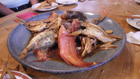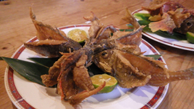![]() 宮古島(平良港) 11月11日に宮古島へ来ました 福島をAM8:10分に離陸~宮古に着いたのがPM5:30分と 一日がかりの移動でした ![]() ティンバウ号(三宅船長) 港を出る 二日目は三宅船長の船を貸し切り釣りに出ます 初めて会った印象は怖い感じでしたが 話すほどに優しさが分かり気持ちの良い船出となりました ![]() ベタなぎの海原 加速して釣り場を移動 風もなく晴天の海は汗がしたたり落ちます 海を知り尽くした三宅船長は 釣り場を移動しながら絶好のポイントへ案内してくれた ![]() 釣り餌(きびなご) カサゴ 餌は「きびなご」と言う小魚で、めざし位の大きさの物を 真ん中位に針を二回通して付ける 糸を垂らしてすぐに釣れたのはカサゴでした ![]() 大型船と行き交う 釣れまくり 大きな船が行き交う海で釣り船は私たちの一艘だけでした ベタなぎの海は釣りに適しないのが相場です しかし三宅船長の知り尽くした海域は魚の居場所が分かるのか曝釣れだ・・・笑 船長のうたい文句は! 「釣り船は船長で決まる釣れなかったら全額返します」 予約は(090-6860-3313) 本当に三宅船長の船で良かったです ![]() タイ等など20数匹 郷土料理「みほりん」 大漁の魚は予約していました「みほりん」さんへ持ち込みました 宴会の始まるPM6時までに料理を作っていただくことに! ![]() 宮古へ来ました8人の仲間 刺身盛り合わせ 昨日は沖縄の郷土料理で盛り上がりました 今日は魚三昧の料理が並びます ![]() 煮 物 煮物盛り合わせ 唐揚げ 海で育った郷土料理店の味は絶品です 数種類の魚を見事にコラボさせた刺身・煮物・唐揚げは 美味さが弾ける高級料理でした 動画をご覧くださいね! 戻る |
