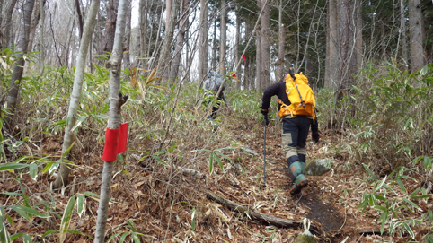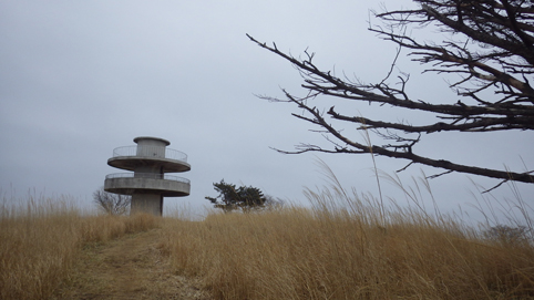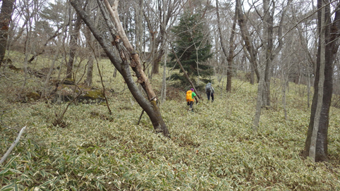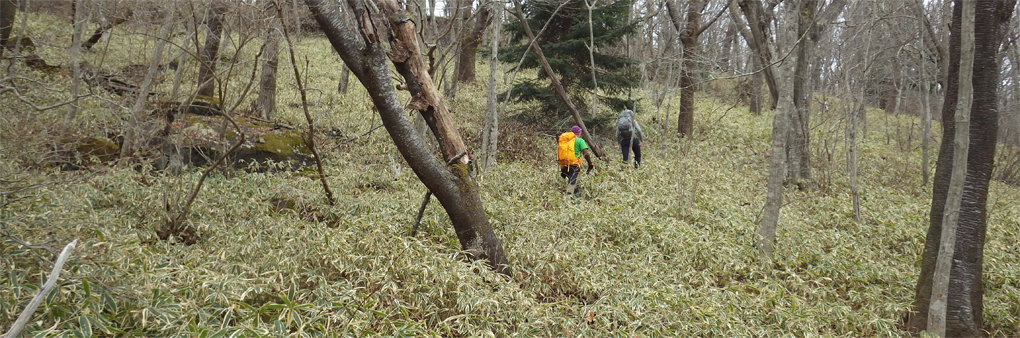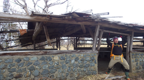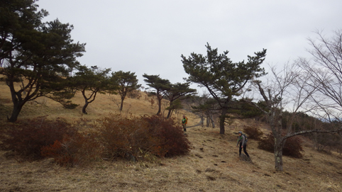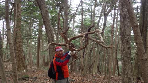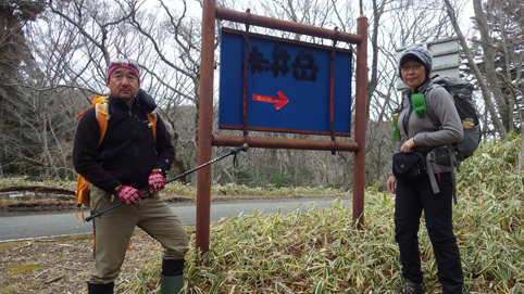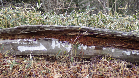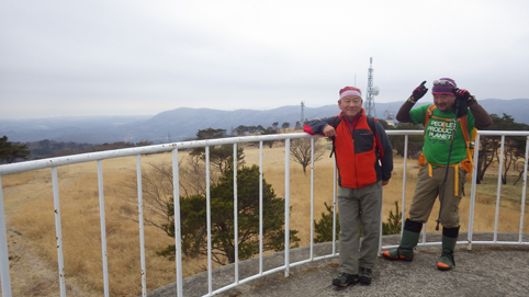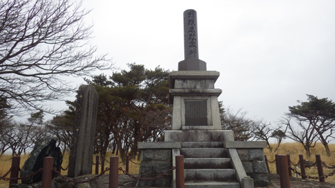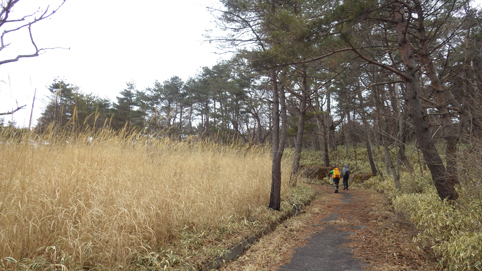 ![]() 笹に覆われた山肌(水石山) 天気予報では福島県の浜通り地方は曇り 気温は低いが登山日和だろうと 出かけた山が閼伽井嶽~水石山です ![]() 登山口の三差路 車をデポ 登山口の三差路に車を止めて閼伽井嶽へ行きました ![]() 登山口 登山道 いざ出発となると! 何と小雪がパラパラ落ちる 早春の山と言う事で軽装のために寒い ![]() アセミ 林 鹿の角・・・? 山全体にアセミの木が見られる 枯れ木を持って威嚇する季節外れのサンタが・・・笑 ![]() モミの巨木 ケルンが在ります モミの巨木を見つけて手を回すと二人でも届かない太さだ 少し歩くと石を並べた中央に山頂は少し先の道標 ![]() 閼伽井嶽山頂 ( タッシーさん ~ Gonちゃん ~ Sei ) 歩き始めて30分くらいの所に山頂が在った ![]() 休 憩 古い道標 寒いが一休みすることにした 手にしてるのはタッシーさんのお姉さんが作ってくれた厚焼き玉子です 美味しいお握りも頂きご馳走様でした ![]() 水石山へ 登山道 閼伽井嶽から一旦下りて水石山へ進む! 林道歩きではなく笹の生い茂る山肌を進むことにした ![]() 笹の斜面 刈り払われた斜面(いばらが密集) 道なき山を歩き山頂直下に出ると、 いばらの山肌と変わり、山頂方面を見ると電波塔が見えます ![]() 山頂公園 遠望に見える太平洋 山頂は公園になってて整備された場所に出ます 東には太平洋の海原が見えた ![]() アセミの蕾 山頂の林道 アセミの蕾が膨らみ今にも咲きそうです 山頂を囲む様に在る道を歩くと古びた倉庫や水路が在る ![]() 展望台 凍りついた階段 存在感のある塔は展望台だ 早速登ることに成り行くと、凍りついたラセン階段が現れる 気を抜くとツルリと滑り怖い、抜き足差し足状態でのぼる姿が滑稽です・・・笑 ![]() 電波塔 展望デッキ 山頂は広く展望台の眺めは素晴らしい 霞んではいるが太平洋の海原や山並みを見ることができます ![]() 山頂に在る三角点 戦没者慰霊碑 広場には三角点を始め慰霊碑や電波塔が点在してた ![]() 山頂広場 壊れた小屋 BBQハウスとみられる小屋は今にも潰れそうです 上物以外は直ぐにも使いそうだが・・・危ない・・・押さえても無駄ですよ~ ![]() 馬頭観音 石碑が祀られてた 最後までお天道様の顔を見ることはできませんでした タッシーさん Gonちゃん 寒い一日だったね 動画をご覧くださいね! 戻る |