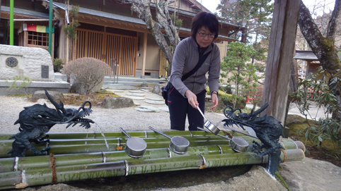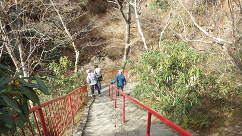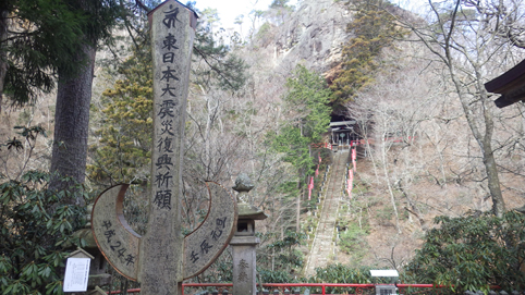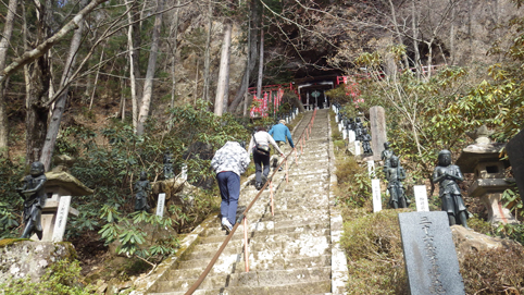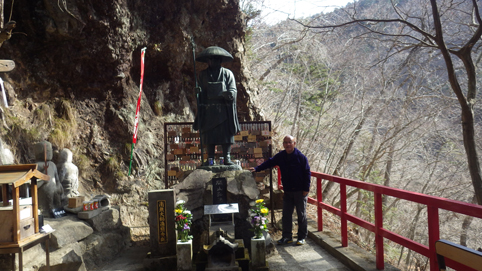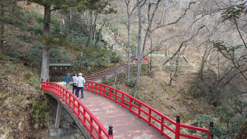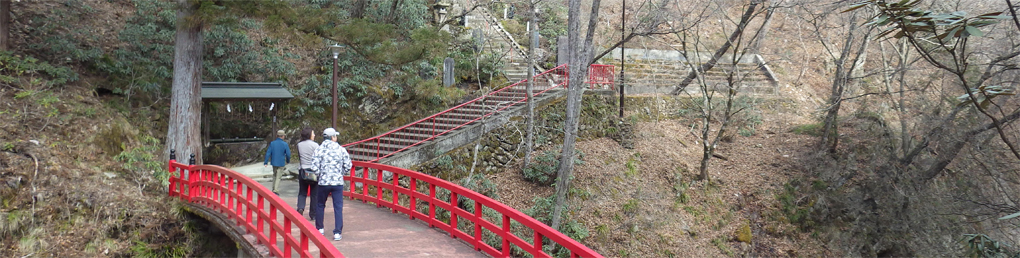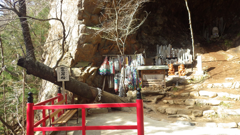 ![]() 渓谷に架かる橋 大同2年(807年) 弘法大師が東北行脚の途中に護摩壇を築き 八溝山系に住む悪魂を調伏祈願したのが山本不動尊の始まりと伝えられています ![]() カエルが祀られてる入口 参 道 棚倉町から山間を走り 杉並木の道を通過すると駐車場に着きました 参拝道の入口には大きなカエルの石像が有ります ![]() 水天尊 仁王様 水神様や仁王様が参道に祀られてた ![]() 薬師堂 案内地蔵 薬師堂を過ぎると可愛い地蔵さんが案内してくれます ![]() 赤 橋 (開運橋) 御手洗 開運橋を渡り御手洗場で清めお参りをしました ![]() 本 堂 七福神 本堂で参拝をすませ、 「足腰健全」と「交通安全」のお守りを受けました ![]() 東日本大震災祈願 渓谷へ下りる 2011年3月11日 東日本大震災の復興祈願の塔が祀られています ![]() 渓流に架かる橋 130段の石段 渓谷に在る赤い橋を渡り奥の院へ行く! ![]() 斜度の在る階段 弘法大師 130段の階段を上ると弘法大師の像や御宮が現れた ![]() 奥の院 霊窟桜(おゆわやざくら) 大岩の空洞に在るのが奥の院です 桜の古木が在り(おゆわやざくら)と命名されていました ![]() 大岩の洞窟 急斜面に作られた石段 迫力の在る洞窟は神々しく心新たな日を迎えることだ出来ました 八溝山へ登る前に訪れた霊場でです 此処から登山口へ車を走らせた 戻る |