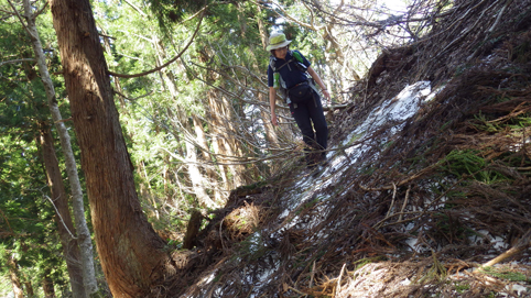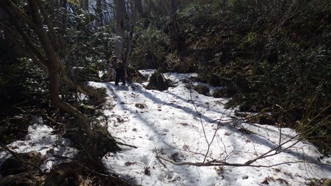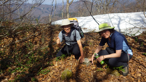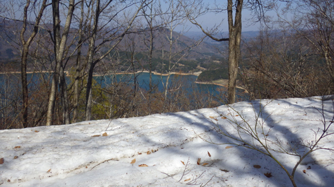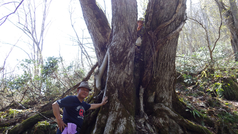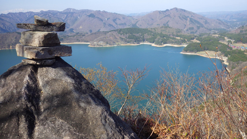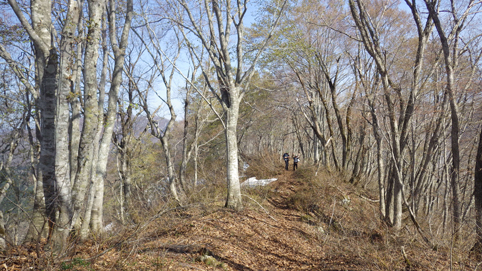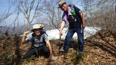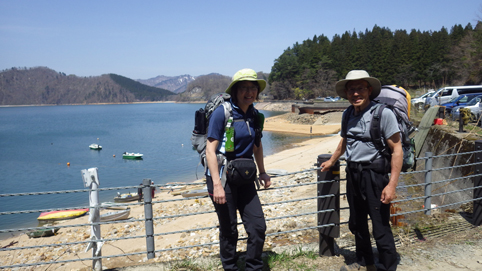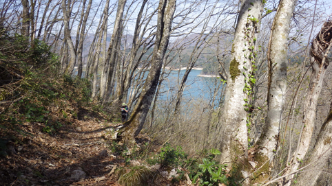 ![]() 沼沢湖に浮かぶ想山(前山は左・・・見えない) 夏日の前山へ登りに来ました カラッとした空気と沼沢湖に浮かぶ想山が気持ちを逸らせる ![]() 湖畔にて!(Gonちゃん~Su-さん) 漁業組合 沼沢湖畔を歩き山へ入ります ![]() 登山口 道 標 登山口は組合事務所の裏手に在る 土手を登り登山道へ行くが! 最初から道を歩けとクレームでした・・・笑 ![]() インレイソウ ショウジョウバカマ 雪解けを待ってて顔を出した緑の葉はインレイソウだ 少し進むとショウジョウバカマが登山道に列をなして咲いています ![]() 残雪の斜面 杉林を彷徨う 湖畔沿いの杉林を歩いていると道から外れていることに気が付きます 戻るのも面倒と斜面を直登することにした ![]() 直登します 謎の巨木 足元の木々が低木の為に助かる 暫く登ると三又に分かれた謎の巨木が現れた ![]() 藪を歩く! 残雪の山肌 藪を超えて残雪を踏みしめ歩くこと1時間くらい過ぎて登山道に合流した ![]() 尾根を目指し 登山道と合流 登山道合流前の藪斜面を歩くGonちゃん 今年初めに登った湯ノ岳と同じだねと一言はSu-さんでした・・・笑 ![]() ヤマザクラ イワナシ・・・? 尾根に出るとヤマザクラと、奥に見える 残雪のコントラストが素晴らしい ![]() 眼下の沼沢湖 真っ白い山「飯豊山」 稜線に出ました 沼沢湖の絶景と真っ白い尾根の飯豊山が際立っています ![]() タムシバ 休憩のSei 咲き始めたばかりのタムシバの爽やかな白が 暑さを忘れさせてくれた ![]() 絶景の沼沢湖 稜線にて! 沼沢湖の絶景を一望できる山 「前山」です ![]() 綺麗な湖面 残雪の山 真っ青な空と水面の青が、山々を挟む 鮮明に縁どられた風景を眺めて山歩きの醍醐味を満喫した ![]() カモシカの足跡 稜線の雪 残雪にはカモシカの足跡と山盛りの糞があります 深山の動物が遊んでる場所を歩かせて頂いてると感じる一時でした ![]() 山頂に在る三角点 (Su-さん~Sei~Gonちゃん) 地図上に在る三角点(山頂)に着いた ここが山頂と50分の大休憩を楽しむが 後に調べると少し先に山頂道標が在ったようです・・・苦笑 ![]() 尾根の林 ケルンと沼沢湖 絶景の山歩きを楽しみ山頂を後にしました 楽しい山歩きに感激です 動画をご覧くださいね! 戻る |