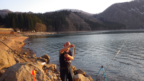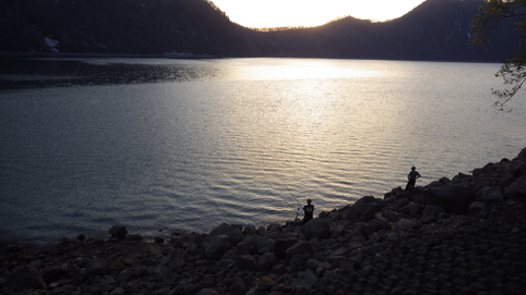 ![]() 沼沢湖でキャンプ(ヒメマスを釣りました) 前山登山から帰り湖畔でキャンプです 今日の目的 第二段はヒメマスを釣り焼いて食べることだ・・・笑 ![]() 湖畔でキャンプ 何時もの様に! テーブルを広げれば宴会開始 汗した体に泡は最適です ![]() 日が傾いてきた 想山が湖面に浮かぶ 日が傾いてきたので釣りを始める 穏やかだ 気持ちも水面も 穏やかです ![]() ヒメマスが釣れた 泣き尺 釣り開始早々にヒメマスが釣れた ![]() マスを焼く チジミ 焼きます 釣れたヒメマスを焼いて食べる チジミが美味しい ![]() 美味い 野菜スープ 豆 腐 巻寿司に野菜スープがお似合いだ 寿司の写真が無い・・・? ![]() 日が落ちて 寝 た 日が落ちてテントに入り飲んだ 何時まで飲んで 何時寝たか全くわからない・・・笑 ![]() 朝が来て また飲んだ 早朝より釣りを楽しんでいると 朝日が昇ったころを見計らったように二人が現れました 夜中の底冷えから解放されて気温がグングン上がります 気持ちの良い朝だ ![]() 小舟で釣りをしてる ベタなぎの水面 小舟が水面に浮かぶ 釣れているようだ ![]() のんびり二人 湖畔の太公望 岸から釣りをする太公望 釣れない様だ・・・苦笑 ![]() ヒメマス 焼いた ソーメン 朝釣れたヒメマスを焼いて食べた 朝食はソーメンです ヒメマスは本当に美味い 来月又来るど~ ![]() 沼沢湖畔と漁業組合の館(左端) 12時に帰り支度 地元の人は優しい人ばかり 楽しい二日間を過ごし帰路についた 動画をご覧くださいね! キャンプに戻る 釣り日記に戻る |
