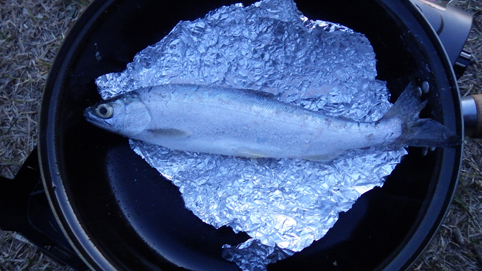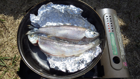 ヒメマスを釣り焼いて食べる
