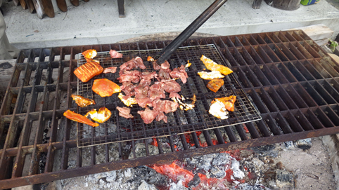 ![]() 山小屋に集う! 今日から二日間に渡り「な美ら」オフ会です 総勢12名が集合して春の山菜を楽しみました ![]() 集合前の山小屋 山菜が並ぶ 早朝より山菜を採り準備に大忙しです ![]() 盛り上がります まだ来ぬ仲間あり 一番乗りはAM11時 午後に成り予定通り参加者が増えてきました ![]() 山小屋のモクレン 休 憩 小雨がぱらつくが飲むのに支障なし・・・・笑 ![]() 何食べるかな? 炭火焼 何食べるかな? と 食材を覗き込む! 笑 アミの上には色んな食べ物が並び焼かれて行きます ![]() 乗ってきました 牛ブロック焼 飲むほどに乗ってきた 出ました牛ブロック、時間をかけて炭火で焼き上げる 焼き目が付いたら包丁で薄く切り塩コショウで食べるのが流儀です 山小屋料理で一番受けてる自慢の一品だ ![]() 天ぷら 最後に来た二人(後方) 山菜はコゴミ・ウド・ワサビ・アザミ・ヨモギ・ノノシロ・ワラビ・コシアブラ等など 材料には事欠かない品数です 二日間に渡り、飲んで・歌って・散策を楽しみオフ会が終わりました また会いましょうを合言葉に三々五々解散 皆さん楽しい時間ありがとう Sei 動画をご覧くださいね! 戻る 川上の離れ家へ戻る |