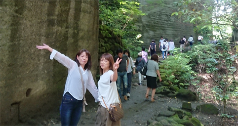 ![]() 鋸山から内房 郡山をAM6:00に出て関東方面へ研修旅行に来ました バスの中は走りだすより早く宴会が始まります ![]() 山麓駅 ロープウェイ 途中で木更津アウトレットへ廻り 買い物を楽しんだり食事をするなど余裕の旅です 鋸山へ着いたのはPM3時ころで 地獄のぞき&日本寺大仏様に分かれて探索を開始しました ![]() 展望台より房総半島 山頂駅展望台からは房総半島を一望できます 曇り空の為に眺望は良くないが日差しが遮られて探索には良い条件だ ![]() 地獄のぞき入口 ハイキングコース 早速に入館します 私は百尺観音様や地獄のぞき組と一緒にハイキングコースを進みました ![]() 百尺観音 地獄のぞき 何度か訪れていますが観音様は大きいですね! 下から見上げる切り立った絶壁 ![]() 石を切りだして出来た工作物の絶壁 建築用の石材として使われていました ![]() 絶壁の展望台 余裕の皆さん 地獄のぞきで余裕に見えるが? 下りてきてから聞くと真下を見ると吸い込まれる様で足がすくんだようです・・・笑 ![]() 展望台 一安心 下山後は笑顔の探索開始 歩く姿も余裕がありました(動画で確認できます) 笑 ![]() ![]() 無事に帰還 焼団子 展望台から無事に帰ってきました 山頂駅で焼団子を買って食べる 美味かった 此処からは今日の宿へまっしぐら楽しい温泉と宴会が待っています 動画をご覧くださいね! 戻る |