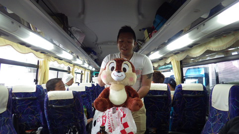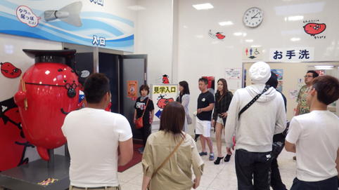 ![]() 最上階より海ほたる バス旅 二日目は南房総の宿をAM8:30分に出ました 今にも泣き出しそうな空模様です ![]() 宿を出発 チョット二日酔い気味 ホテル前で写真を撮り出発 ほろ酔い気味の姿も見られるが元気に旅を楽しみます ![]() 最初に道の駅 干物屋 最初に寄ったのは道の駅だ チョット早かったために店が開いていません 15分ほど待って開いたお店で買い物をしました ![]() 海ほたる 眼下の風景 次は帰路に在る東京湾アクアラインへ 初めて来た仲間が居る為に時間を長く取ります ![]() 魚のオブジェ 羽田方面を望む 展望デッキ(最上階)へ 東京湾の様子を眺め羽田へ離着陸する飛行機を眺めるなど しばし海ほたるの中を散策しました ![]() トンネル工事に使った掘削刃(左) 上階の展望 何回も着てる場所なのに初めて見るオブジェがありました 何時もは休憩と買い物をするだけで通過してた様です・・・苦笑 ![]() 案内板 地球儀? 今日は ゆっくり出来たので海ほたるを堪能しました ![]() ゲーセンでゲットー1 -2 時間になっても、なかなか返ってこない仲間が数名居ます 成る程・・・ゲイムに夢中に成っていたようだ (笑) ![]() -3 -4 ![]() -5 疲れて寝ます バスが走りだすと直ぐに寝てしまう早業はお見事です 最後部で私は一人手酌酒を楽しみました ![]() 大洗港 寿司 しらす丼 次の目的地は大洗港です 此処で遅いHiro飯を食べました 新鮮なネタの寿司は極旨です 今朝 水揚げされたシラスは旨味がたっぷり ご飯が隠れるほどシラスが盛られる最高の味に皆さん喜びが零れていました ![]() 港で寛ぐ 市場&食堂 お腹がいっぱいに成り港を探索して時を過ごします ![]() 港の漁船 散策を楽しむ! 穏やかな海に漁船が並んでた ![]() 明太子(かねふく) 工場見学 最後に寄ったのは明太子の「かねふく」です 残念ながらお目当ての生明太子は売り切れて買う事が出来ませんでした 仕方なく冷凍の明太子や「めんたい握り」を買って帰路につく! 楽しい関東バス旅が終わりました 動画をご覧くださいね! 戻る |