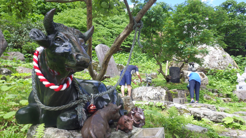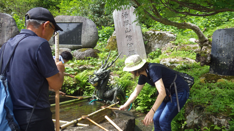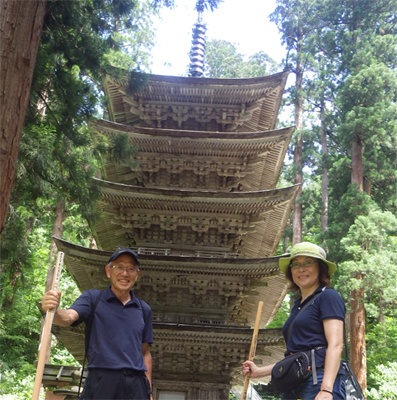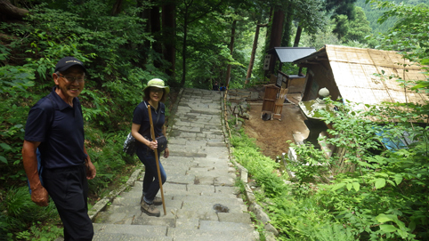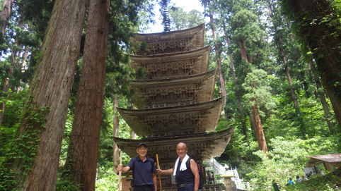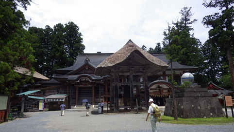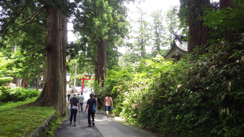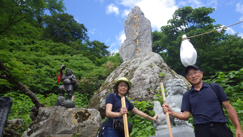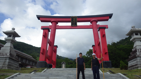 ![]() 羽黒山(杉並木) 22年(22回目)のお参りで訪れました 平成9年に初めてお参りに行った時、泊まりました宿坊で! 30年連続で必ずお参りに来ますと願を掛けました 元気でなければ願いはかなわない 連続で来ることに意義があると思った為です 残すところ8年で30回のお参りが達成 その時に私は79歳になりますが、人生100年の計を全うすれば 道半ば 之からも丈夫な体に感謝して過ごす事を誓う ![]() いでは文化記念館 境内に在る斎藤商店 車をデポした「いでは記念館」からタクシーで羽黒山境内へ向かった 山頂駐車場に在る「斎藤商店」へ寄り休憩です いつもお世話になってるご主人と世間話をしながらお土産を求めた ![]() 羽黒山参道 出てきたトカゲ 参道を進み三神合祭殿へ 参道に在る岩の上でトカゲが甲羅干しをしています ![]() アジサイ 参集殿 アジサイが綺麗に咲いていました 参集殿の境内には大祓輪神事(動画で確認できます)が在り 通り抜けを体験します ![]() 鏡 池 三神合祭殿 合祭殿の階段にはスロープが作られていました お参りをする人に心配りをしてくださったのでしょうね! 今まで元気に過ごさせて頂いてる感謝を祈りました (合掌) ![]() 蜂子神社 2446の石段 蜂子神社の前を進み、杉並木の階段を下ります 木陰が多く涼しくも感じられた ![]() 杉並木 二ノ坂茶屋 羽黒山の杉は樹齢300~600年と言われています 中でも爺杉は1000年を超えてる古木だ 階段の中間地点に在る「二ノ坂茶屋」へ 羽黒山に来てここを通過するときに必ず立ち寄る憩いの場所です ![]() 庄内平野 五重塔 茶屋で庄内平野を眼下に見て餅と抹茶を頂く 女将さんの優しい言葉に疲れも飛んでしまいました・・・笑 ![]() Su-さん&Gonちゃん 受 付 国宝、羽黒山五重塔特別拝観、 明治以降で公開した記録が無いと言われてる特別公開でした 櫓が組まれ、中を見ることが出来ます 貴重な秘宝を拝観! 22年目にして素晴らしい体験が出来ました ![]() 須賀の滝 神 橋 此処は祓川に流れ落ちる須賀の滝です 水量が多い時は迫力があるが今日はゆるい流れでした ![]() 湯殿山 案内板 羽黒山の参拝を終えて湯殿山に来ました 予定では本宮まで歩くはずでしたが時間が押していて往路はバスに乗る ![]() 牛が祀られている 御手洗場 牛が祀られてる参道入口で手を清め、湯殿山神社へ行きました ![]() 本宮入口 山姥(参道) 湯殿山は撮影禁止の為に記録はありません 本宮で感謝と願いを祈り参道を戻りました ![]() 玉姫稲荷神社 参道に祀られてる石仏 大鳥居の近くに祀られてる玉姫神社でお祈りをします ![]() 湯殿山大鳥居 宿「えびすや」 出羽三山巡りの当初は宿坊に泊まるのが決まりでした その後は羽黒山近くや志津温泉の宿に泊まるように成り 数年前にはキャンプ場で過ごすこともありました 今日は何回もお世話になってる「えびすや」さんです 御婆ちゃんの世代から泊まってる宿で! 我が家に帰って来たような気持ちになりました 優しい女将さんのお持て成しを頂き 美味しい山菜蕎麦を食べながら疲れをいやすことが出来ました 明日は月山の開山です 飲みすぎないように早く寝て?登山に備えますかね~ (笑) 動画をご覧くださいね! 戻る |