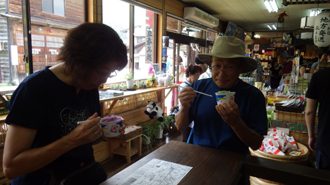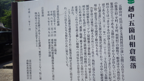 ![]() 白川郷の合掌造り 16日は宿を出て白川郷へ向かいました 今日も朝からジリジリと太陽の日差しが降り注ぐ ![]() 白山白川郷ホワイトロード 蛇谷園地 最初に寄ったのはホワイトロードに在る親谷温泉の在るところです 案内板を見ると急な階段を下りると書かれてる その先には姥ヶ滝があり見どころ一杯の様だが! まだ十分に疲れが取れた訳ではないと眼下を覗くことで諦めました・・・笑 ![]() 白山展望台 白山方面 次に寄ったのが白山展望台です 望遠鏡も在るが雲に邪魔されて見る事が出来なかった ![]() 蓮如茶屋 白川郷道の駅 峠を越えて下り道に現れたのが蓮如茶屋 美味しい水を頂き団子を食べてお土産をゲットしました 道の駅「白川郷」に寄るも観るだけで先へ進みます ![]() 庄川に係る吊り橋 田園に立つ集落 大きな駐車場は白川郷だ 車を止めて吊り橋を渡れば合掌造りの集落に着きます ![]() 集落の中を歩く 大勢の観光客 人込みを避けて山手の方へ向かう イメージでは静かな田園に佇む合掌造りの家が並んでる光景だ ![]() ゆるい坂を登り 土石流水路 しかし行き交うことも儘ならない様な人・人・人です メーン通りを避けて山側の道を探索しました ![]() 街中を歩いてる様 水車の前で! キイチゴがたわわに実る民家のわきを通り 行き交う人込みへ迷い込んだ ![]() 屋根の葺き替え かき氷を食べる 萱の束を重ねて葺き替える屋根の作業が黙々と進められてた 世界文化遺産を守る為に尽力してくださる方々へ敬意を表します そして通りに在るお店に入り、かき氷を食べる 流れる様に出てくる汗を止める最終手段か・・・笑 ![]() 五箇山の集落 次に五箇山の集落を訪れました 相倉には23棟の合掌造りの家があります 旧五箇山街道 落ち着いた雰囲気 白川郷と比べて静かな集落は私のイメージにピッタリだ 此処なら雪を被った合掌造りの風景が似合う! ![]() 相倉民俗館 展望台から集落 展望台が数か所あり集落を一望できます ![]() 合掌造りの家 暑いで~す 集落に在る道を巡り文化遺産を堪能しました ![]() 畑の中の家 静かな集落 のどかな景色が広がる相倉の集落 ![]() 茶店(まつや) 山菜蕎麦&固豆腐 茶屋に寄ると優しそうなご主人が涼しい場所に案内してくれた エヤコンが数台作動してて極楽です お品書きに在った山菜蕎麦を頼んで食べる 蕎麦も美味しいが出てきた漬物が極旨なのには驚いた お客様に笑顔で対応するご主人の姿が印象的でした ![]() 形が違う家 地主神社 地面に屋根が付いてる家が在ります 少し先に行くと「地主神社」が在った そのまま読むのでしょうか、此処の主が立てた神社なんでしょうね! ![]() 田んぼの中の家 案内板 案内板を読んで解ったような顔で帰路についたSeiです・・・笑 ![]() 大牧温泉 遊覧船 北陸道へ行く途中には有名な大牧温泉が在ります 予約を取るのも大変な秘湯だ 優雅なお客様をのせて大牧温泉へ遊覧船が動き出した いつかは大牧温泉へ・・・と・・・船を見送ります こうして二泊三日の旅が終わりました Su-さん Gonちゃん お世話になりましたありがとうございます 動画をご覧くださいね! 戻る |