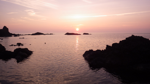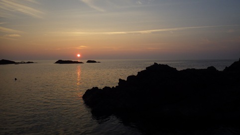 ![]() 粟島(パノラマ新道) お盆休み後半に粟島に来ました 郡山をAM5:00に出て岩船港には8時前に到着し9時発の高速船を待ちます ![]() 高速船(きらら) 岩船港 高速船が粟島から岩船港に着岸しました 浜には多くの観光客が粟島行きの汽船を待つ姿が見られます ![]() 魚の群れ! 出港を待つ! 海原には魚の群れが泳いでる 私たちは時間まで港を散策して寛ぎました ![]() 白波を立てる高速船 船内の様子 高速船は一時間弱で粟島港に着く予定です 船内では来月の予定を立ててる二人の姿をキャッチ・・・笑 ![]() 粟 島 内 浦 内浦には53分の乗船で到着です ![]() 粟島港 迎いの車を待つ 港でお泊りの宿(民宿 後藤)さんの車を待ちます 浜から登山口まで車で送っていただきスタート ![]() パノラマ新道 竹やぶの道 今日は粟島縦走の予定です パノラマ新道を進み三つのピークを越えて釜谷に在る宿へ ![]() 鹿除けのネット 尾根道 登山道は荒れてるところも在るが整備が行き届いています ![]() 海原を覗く 監視カメラ 空けてる場所では日本海を眼下に見ることが出来た シカの食害が在るのか監視カメラが設置されています ![]() 木陰で休憩 キノコ 新道はアップダウンは少ないが距離が在ります 稜線に大きなキノコ発見! ![]() 暑さ攻撃を受ける 蝶 々 あまりの暑さ攻撃に歩みを止める事しばしばだ! 花に群れる蝶々の姿があります蜜で渇きを癒してるのでしょうね ![]() 幻想的な竹林 日よけに成る 今日の歩きで一番印象に残ったのが綺麗な竹林です 細い竹は4~5m在るでしょうか日よけにもなり歩きやすい道でした ![]() 奇麗な竹林 逢坂山ピーク 竹林が切れると二つ目のピーク 逢坂山に着きます 三角点は有りますが山名などの書かれた道標は在りません! ![]() ヒルガオ 鉄塔のピーク 登山道にはヒルガオが多く咲いています 遠望には鉄塔の立つ稜線が見える ![]() 3個目のピーク パノラマ新道 此処が小柴山と思っていましたが 帰ってからGPSを確認すると違う事がわかりました ![]() 鹿捕獲用の中へ 稜線より日本海 観光案内で頂いた粟島マップでは解りずらく コースをGPSに入力するべきでした・・・苦笑 ![]() 釜谷地区 海水浴場 歩き始めて4時間で内浦~パノラマ新道~釜谷へ着きました 蒸し暑い夏日の稜線歩きでギュッと絞ら体がスリムになった様な気持ちです ![]() 釜谷漁港 部落の様子 宿で汗を流してから浜辺へ 夕日が沈むまでには時間が在るので海岸線を散策しました ![]() 呑気な張り紙 夕 日 お土産店のガラスに張り紙が在ります 浜時間の呑気な光景が目に浮かび、笑みが零れた ![]() 日が沈むとき! 日 没 浜辺から見る夕日は今日の疲れさい忘れさせてくれます 奇麗ですね~ ![]() 夕 食 晩酌・・・笑 今日の宿は民宿「後藤」さんです 生きの良い浜料理が並び食が進みました 何一つ残すことなく完食です ご飯も美味しい 地酒も最高だ 宿のスタッフも良い人ばかり 粟島人情に触れることが出来ました 動画をご覧くださいね! 戻る |