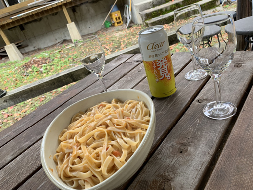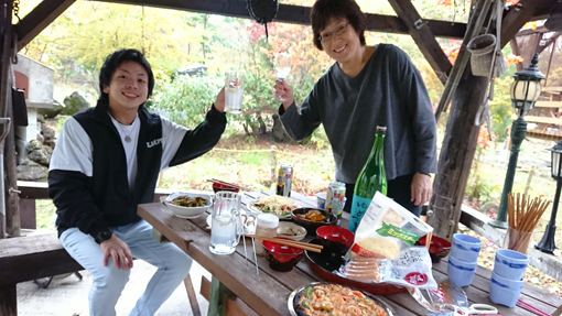 ![]() 紅葉が盛りの裏磐梯 10月の後半は裏磐梯の紅葉が盛りに成ります そこで山小屋へ集まり食べて飲んで紅葉狩りを楽しみました ![]() 山小屋の彩 東小屋 山小屋の木々も色付きが良い 太陽が顔を出してくれれば鮮やかな景色が約束されるが・・・? ![]() 暖機運転 石窯に火入 少し寒いがビールで暖機運転開始です 今日は石窯でピザを焼く予定で早めに火入れをしました ![]() 錦色の山 見事な色付き! 午後の一時 山小屋近辺を散策します ![]() パスタが出てきた エンジン快調 最初に出てきました酒のアテはパスタだ! 昼飯も未だだった為か3人で食べると直ぐに皿から消えてしまいました (笑) ![]() ピザの盛り付け 仲間の差し入れ ピザの盛り付けは具だくさんの贅沢な逸品です 焼き上がったピザを持ち仲間からの差し入れの酒を煽るのでした ![]() 芋煮の主役 芋汁で~す 今日の主役 芋汁が出来上がりました サトイモ・キノコ・コンニャク・油揚げ・鶏肉・大根・豆腐など! こくがあり旨味が凝縮された汁は正に天下の大統領と言わせしめた味です (笑) ![]() そろそろ仲間が来るかな! 焼き上がったピザ 準備が出来て仲間が来るのを待つ間に! 焼き上がったピザを頂きます トロリと解けたチーズが具に絡み 周りが焦げてるが・・・誰が作ったか・・・ピザ店に負けない味に舌鼓でした ![]() 露天風呂でご機嫌 小屋へ入り 露天風呂に入り日本酒を飲みます これは儀式の様なもので誰もが楽しむ一コマとなりました・・・笑 日が暮れて小屋へ入り宴会は続きます 何を飲んでも 何を食べても ゆかいな仲間が集れば笑いが絶えません! ![]() 翌日はキノコ狩り 広場に行く 午前様まで飲み明かした翌日はキノコ狩りです ![]() お目当てのキノコ ナメコ&オリミキ お目当てのナメコやオリミキが顔を出してる! ![]() 倒木に出ているナメコ 収 穫 倒木には団子状のナメコが出ています 袋にいっぱいに採ったキノコは分けてお土産となりました ![]() 裏磐梯の紅葉 少人数の芋煮会でしたが、 ゆかいな仲間と楽しい時を過ごすことが出来ました 動画をごらんくださいね! 戻る |