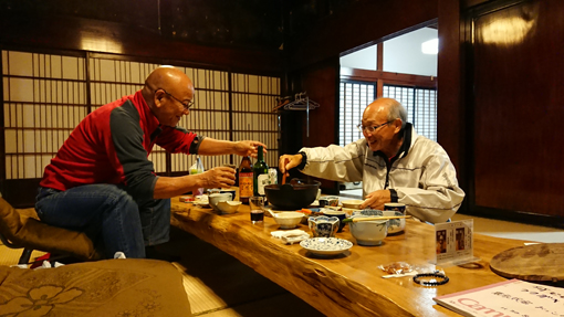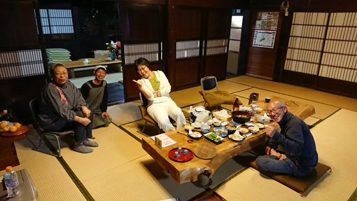 ![]() 古民家「おっこの木」 新潟県小千谷市真人町茂居2518 電話0258-86-7998 小千谷ICから国道117号線~県道49号線~県道56号線 車で約15分 宿泊 一泊二食付 ¥8500 築160年の古民家 ![]() 民宿入口 玄 関 昨晩は道に迷って宿に着いたのは予定より1時間強の遅れでした 途中の寄り道で峠越えとなり工事中の場所に迷い込み通行止め! 同じ場所を数回廻り 何とか辿り付きました 高速道を来て進めば簡単な道のりです (笑) ![]() 文化財登録 農 具 笑顔のお母さんにお迎え頂き疲れも吹っ飛びました 玄関を入ると古民具が並び有形文化財表示の盾が置かれてます ![]() 民宿の外観 近隣の様子 板張りの外観と見下ろす風景が心に刻まれた 何と静かな場所でしょう 土手には無造作にカボチャが転がっていた ![]() 集 落 隣 家 集落の戸数は35世帯 人口 約110人 中越地震がきっかけで元気がなくなった村を取り戻そうと、 38歳から78歳までの有志30人が集まり、 わかとち未来会議が設立された ![]() 入口の木(一本が枯れてる) 高台の古民家 民宿名前の由来になった木? ![]() 囲炉裏 民芸品 玄関を入ると囲炉裏の部屋! 棚には民芸品や案内板が在り古き佇まいを感じます ![]() 神 棚 座 敷 居間に入ると高い天井がいぶし銀の輝きで! しめ縄が張られた神棚が祀られています ![]() 郷土料理 ![]() 静かな佇まいの中で! 美味しい料理 女将さんのお持て成しで話がはずみます テーブルには郷土料理が次々と並べられた ![]() 郷土料理 ![]() 村のお母さんと談笑! 吹き抜けの天井 中越地震や東日本大震災の話、古民家の歴史 築160年の古民家が改修を経て2010年に開業に至った ![]() 部屋の梁(幅60cm) 格子戸 圧巻の梁 障子戸がゆったりとした時を醸し出します ![]() ケアキの引き戸 一枚板のテーブル ケアキの引き戸は一枚板 部屋に置かれたぶ厚い杉のテーブルが温かい空間に変えるのでした ![]() 屏 風 飾り戸 なんて書かれているか解らないが圧倒される 明かりが差し込む部屋でのんびりと寛ぎます ![]() 欄 間 天 井 透き絵が施された欄間に圧倒される天井が凄い! ![]() 二階の部屋 落ち着きのある部屋 二階に足を運ぶと落ち着きのある二部屋が在ります 何を瞑想したか清々しい気持ちになりました ![]() 隣接する蔵 蔵の鍵 隣接する蔵に案内された 引き戸の鍵は時代を感じさせる作りです ![]() 蔵の中 古民家バーに成ってる 中は古民家の作りを生かしたバーカウンターや棚 焦がし板を使って格子やフロアーを造作してありました ![]() 大震災の時に贈呈 雰囲気満天 大震災の時のお世話になった人達の心のこもってる文面に涙する 人情豊かな越後の人に感謝の気持ちになりました ![]() 集落の建物 田園風景 若栃の世帯数は35世帯、人口は約110人 村人が力を合わせて古民家民宿を営んでいます 旅の一夜を自然豊かな風景と懐かしい空間で過ごすことが出来ました 女将さん Moriさん お世話になった皆さん ありがとうございました 動画をご覧くださいね! 戻る |