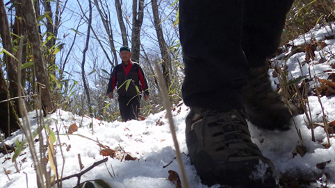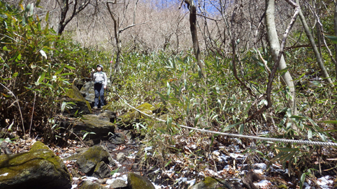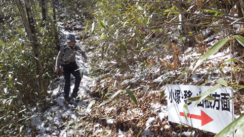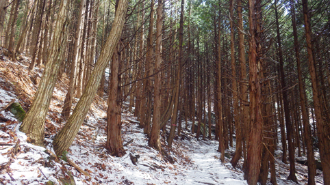 ![]() 山頂の大展望 日曜日の朝 窓越しに見える雪化粧で目が覚めました 雪は降り続き 路面は白くなってます 天気予報を見ると正午頃には回復しそうだ ![]() 登山口のSei 鰍コースのGonちゃん 好転する天候を予想して登山口にはAM11時ごろに着いた 空を見上げると見る見るうちに雲が散らばり太陽の日差しが降り注ぐ! ![]() 杉林の登山道 日向で! うっすらと雪被る登山道を進みます 登り始めは杉林が多く花粉症の私には辛い景色だ・・・笑 ![]() 大岩がゴロゴロ 木彫りのカエル 林の斜面には大きな岩がいっぱい在る 見ようによっては色んな動物に見えて退屈しない登山道です ![]() 道標が多い! ツルを見つけました 少年自然の家登山口からの道には多くの道標が在るのに驚きだ 枝道が多いために立てられたのでしょう感謝いたします ![]() 緩斜面が終わる 斜度の在る岩場 緩斜面の道を登って行くと窪地が現れた 此処から山頂まで750mと書かれた道標が在ります ![]() ロープが張られた道 最後の急登 ロープが張られた道は岩が多くなり斜度も増してきました 残り300m 最後の登りです ![]() 大きな岩 山頂直下 見上げると大きな岩が目に入る 視界も開けて稜線が間近であることが解ります ![]() 稜線に出た 雪被る登山道 尾根に出ると年期の入った案内板が在ります 山頂に向かって進むと木から落ちた雪が積もり行く手を邪魔してた ![]() あと10m 鎌倉岳山頂 山頂直下の滑る場所を安全に登りPM12:30分に到着です ![]() 山頂からの山並み 眼下の風景 山頂に広がる大展望を眺めるも風が強く長居は無用だ 360度 福島の山々を堪能して下山します ![]() 下 山 北斜面は雪多い! 小塚方面へ下り風の当たらない日向を見つけ休憩だ 途中で買った食料でお腹を満たす・・・笑 ![]() 安全に下りる 下山路に在る道標 北斜面の登山道は雪が多く笹の道は滑ります あれ~ あぶね~ などと声を上げ残雪を楽しみ下山しました ![]() なにしてんの~ 登山日和でした 下るほどに雪も斜度も少なくなり歩きやすい 楢木に持たれて何してんの~ 昼寝してないSei 眠いのだ・・・笑 登山日和の鎌倉岳でした 動画をご覧くださいね! 戻る |