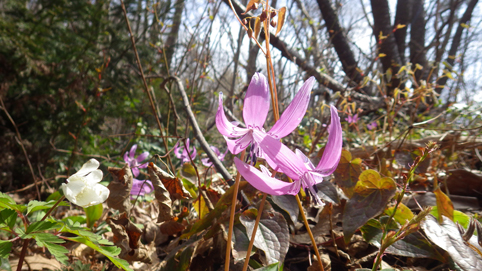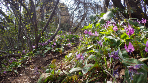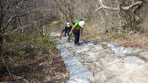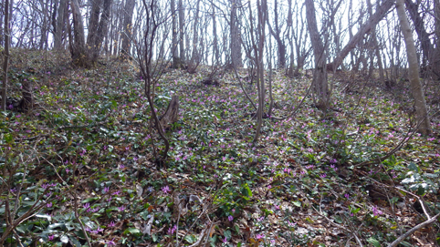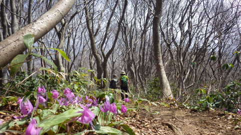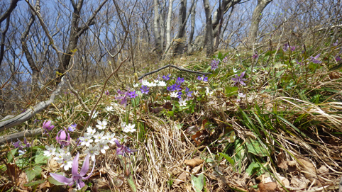 ![]() 山肌のカタクリ 7日の早朝 郡山を出発したのはAM7:30分でした 磐越道を走り北陸道(三条燕IC)で下りて弥彦山(裏参道)登山口へ ![]() 駐車場 靴洗い場 今日の天気予報は曇り~小雨で心配される しかし駐車場に着くと空が明るくなってきました 登山口の駐車場は段々に区画されてて数十台は止めれるように整備されています 沢には靴を洗う場所もあり管理してる方々へ感謝致します ![]() 登山口 雪割草・・? 少し進むと登山道の案内板が出てきた 最初に顔を出したのはムラサキの綺麗な花です ![]() 道 標 カタクリ 緩斜面の道を登るとカタクリの花が並んで咲いています ![]() カタクリの群生 お見事です 登るほどにカタクリの群生がお見事だ ![]() 平坦地の道標 白い花が! 登山道には道標が多く見られます ![]() 急登が続く 分岐に出た 急斜面を登り一息ついた ![]() 標高を上げて! 眼下に広がる海岸線 標高を上げるほどに視界が開け眼下には海岸線が広がる 海辺に沿って走る道路や寺泊港が見えた ![]() 一息入れる 山頂方面 間もなく山頂だが良い具合にベンチが置かれています 展望もよく残す道のりは僅かだ ![]() 多宝山 弥彦神社(奥宮) 奥宮から見えるのは多宝山です 弥彦神社でお参りを済ませ休憩でした ![]() 山頂広場 山頂(Gonちゃん・Sei・Sadaさん) 広場で休んでいると! 其処へ現れたのは山仲間のSumiさんです 後ろから抱き付かれてビックリでした・・・笑 ![]() 電波塔 表参道分岐 広場から縦走路を下り山頂駅まで足を延ばします ![]() 山頂駅 駐車場 眼下にはロープウェイ駅や駐車場が見える 弥彦山は乗り物で山頂に来ることが出来る為に軽装の姿を多く見かけます ![]() 道標にて!Sei 山頂より越後平野 散策を楽しみ下山だ 空けた場所から見えるのは広い越後平野です ![]() 登山道に咲く花 キクザキイチゲ 花街道を周回する為に選んだのは尾根を下り沢登山口へ ![]() 急斜面を下りた 混成する花々 急斜面をドンドン下る ![]() 斜面を彩る 雨乞山方面へ下る 斜面に咲く花々が素晴らしい登山道です ![]() ミヤマキンバイ・・・? 三角点 三角点を足元に見て下りきると沢に出た ![]() ツバキ 登山道の花 林道終点に在る沢の登山口からは急斜面の登り返しだ 此処から分岐まで標高400mを登ります ![]() 縦走路の尾根 カタクリ 下りて来た尾根を眺めて急斜面を一歩一歩進む!が・・・ 疲れも出て会話が無くなります 此のコースを選んだのは誰だ!と圧力が強くなる ただただ無言のSeiでした・・・笑 奇麗な花々を足元に見て一周できるコースへ是非来てくださいね~ 全行程5時間 累計上昇量1000m弱でした 動画をご覧くださいね! 戻る |
