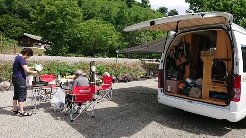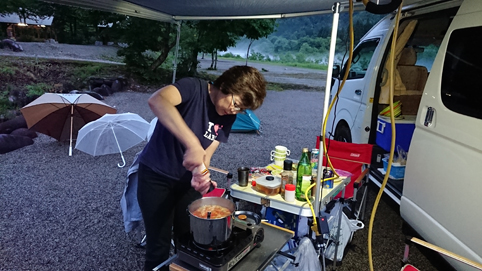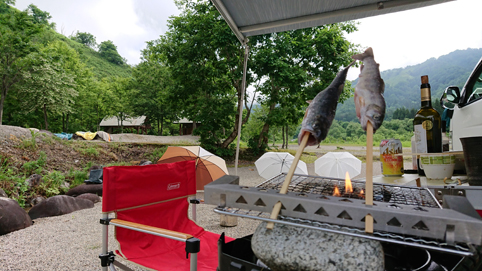![]() 川霧の白い森 雨の中を走り山形県に在る「白い森オートキャンプ場」へ来ました 何度も訪れている大好きな場所です ![]() キャンプ場(入口) 雨が降っています 113号線から入り 荒川沿いを走る 30分程でキャンプ場入口に着きました 雨で利用者は少ないだろうと思っていましたが結構な賑わいです ![]() かじか橋(Su-さん ~ Gonちゃん ~ Sei) 雨の中準備を終えて一休み(カンパ~イ) 1時間もすると雨も上がりドンドン雲が去ってゆきます 一汗流しましょうと向かった先は温泉だ かじか橋を渡り併設されてる「りふれ」へ行きます 「キャンプ場利用者は¥300」 ![]() 野菜スープ 味 見 温泉に浸かり心も体もリフレッシュ 自然の中で食べる料理は極旨です 野菜スープはトマト味 これは美味いと手元の酒も進むのだ・・・笑 ![]() OKが出ました 焼そばを作る スープ味にOKが出た所で野菜たっぷり焼きそばです 隠しあじ豊かな絶妙な舌触りです ![]() 酒のアテ 日が落ちて! アミの上で塩コショウで焼くのは簡単な酒のアテです 之がまた・・・美味いのだ ![]() 賑わうキャンプ場 翌 朝 何時まで飲んでいたのか解らないが! 目覚めはAM4時30分 明るくなってきたところで釣りに出かける 上流は釣れなかったが橋の上から何と。。。 ![]() 素晴らしい天気 のんびりと 夜明けとともに日差しが降り注ぎます 気持ちの良い朝だ 濡れた物を乾かしながら朝食の準備にかかります ![]() 煮込みスープうどん 美味い 朝食は昨夜の野菜スープを使って煮込みうどんです トマト味にはパスタでしょうと言う声を他所に 出来上がりのうどんを食べて お~~ なかなか良い仕事してますね~ 笑 ![]() ヒメマス イワナ&ヤマメ 焼き魚は何故かヒメマスも仲間入り・・・? 釣れたてのイワナ・ヤマメ・カジカなどが網の上で踊っていました ![]() 釣れたて塩焼き サイトの風景 日差しの中 AM11:00まで寛ぎ帰路についた 帰りは「道の駅」を走破しようと寄り道です 楽しい買い物を重ねて車の中はお土産でいっぱいでした・・・笑 動画をご覧くださいね! 戻る |