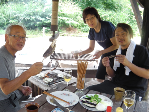 ![]() 湖面越しに見る磐梯山 ある時ふと思った 色んなところに行っているが足元を忘れてるのでは! と 言う 事で 会津の思いついた所へ行ってきました ![]() 石筵の釣り堀 大きなニジマス 裏磐梯に行く通り道に在るのが石筵釣り堀です 週に何回か通る道ですが寄ったことが有りませんでした ![]() 釣れないとGonちゃん 釣り上げるSu-さん それでは寄り道と釣り糸を垂れる Gonちゃん Su-さん なかなか釣れないとぼやきます すると釣り堀の主人が来て撒き餌で魚を寄せてくれました すると見事に大きなニジマスがヒット めでたしめでたし・・・笑 ![]() 廃校の「まんまや」 戦没者慰霊碑 次に向かったのがテレビで放映されていた食堂です 北塩原村の廃校に出来た「まんまや」だ ![]() お品書 山塩ラーメン メニューを見たが食べる物は来る前から決まっていました 何と言っても一押しは山塩ラーメンです サッパリした塩味ながら濃い旨味が舌で踊りだすのでした・・・笑 ![]() 橋の上から眺める檜原湖 釣り船 湖畔を一周する道路を走り 橋の上から湖面を覗く 釣り船がベタなぎの水面に浮いていました ![]() 24時間テレビ 檜原湖船着場 道の駅では「24時間テレビ」の募金活動が繰り広げられています 私も黄色い箱に気持ちの募金をさせて頂きました ![]() 船上から磐梯山 Gonちゃん~Su-さん 檜原湖遊覧船には72歳になるまで乗ったことが有りません 初めて湖面から見る裏磐梯の絶景を眺めることが出来ました・・・笑 ![]() 毘沙門沼 ボート乗り場 次に行ったところは何回か来てる場所ですが! Su-さんは初めての所です ![]() 沼の錦鯉 五色沼 水面に揺れる錦鯉の姿をボーット見つめる姿が在りました ![]() 猿軍団 吾妻山(秋元湖)より その後 曽原湖「裏磐梯に在る湖では一番小さい」に行きました 道路沿いには民宿やペンションがいっぱいあります 休む場所を探していましたが適所が無く後にしました そして秋元湖へ 水力発電所の在る堰堤を進みますが なんと林道が落石で通行止めに成っていました 仕方なく引き返すと猿軍団が道に現れる 堂々とした姿を車上から眺めサルのを待ちました・・・笑 ![]() 川上温泉 山小屋 夕方には川上温泉の山小屋へ 今日の締めくくりは談笑の中で反省会です ![]() 露天風呂のSu-さん ぼーと してる Sei 風呂に入り日本酒を飲むのが! 誰が言ったか露天風呂通と言うものだと盃をあおるのでした ![]() 東屋で宴会 スイカ大好き Kさん 釣り堀のニジマスを炭火塩焼で頂きます 夜中に到着したKさんは焼き魚とスイカが大好物なのだ・・・笑 朝方まで飲んでたにしては元気ですね~ ![]() 喜多方ラーメン(なまえ) まつり亭 最後に行った所は喜多方市です お目当てはラーメンだ 一番候補の「なまえ」さんに行くと行列が出来ています 最後尾に並んで数十分待っていると店主さんから言われた言葉は! スープが無くなりましたので今日の営業は終わりです・・・・爆笑 ![]() メニュー 喜多方ラーメン 気を取り直して名店を探します 大きな駐車場に車が溢れんばかりに並んでたのが「まつり亭」さんだ 迷うことなく喜多方ラーメンを頼みます 待ち時間は20~30分でしたが待つ値打ちありの激ウマのラーメンでした こうして足元を見る二日間を楽しむことが出来ました 動画をごらんくださいね! 戻る |